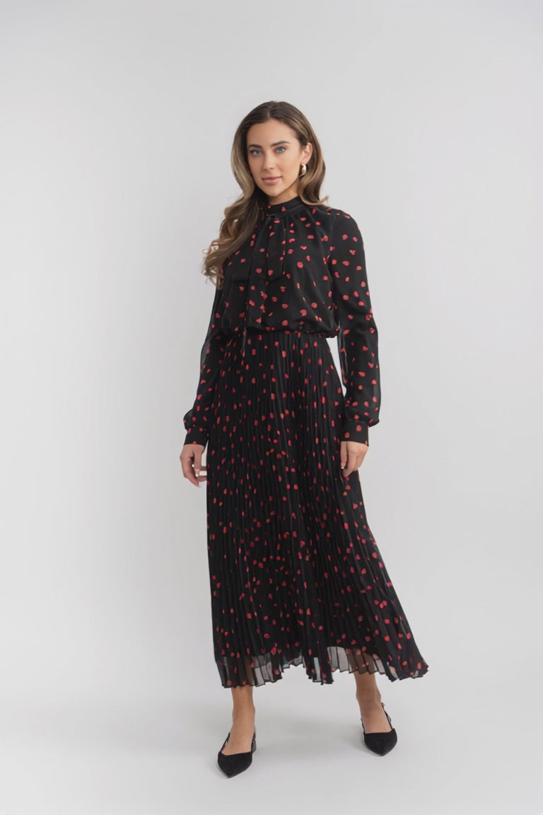 Girls long sleeve woven sunburst pleated dress with pleated marrowedge at waist and waist,center back invisible zipper with bow tie at front. ֲ
