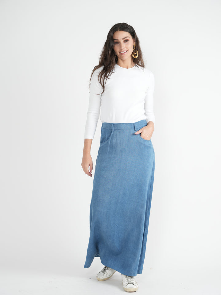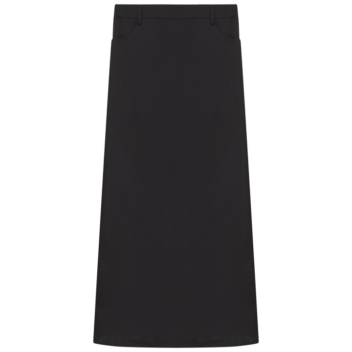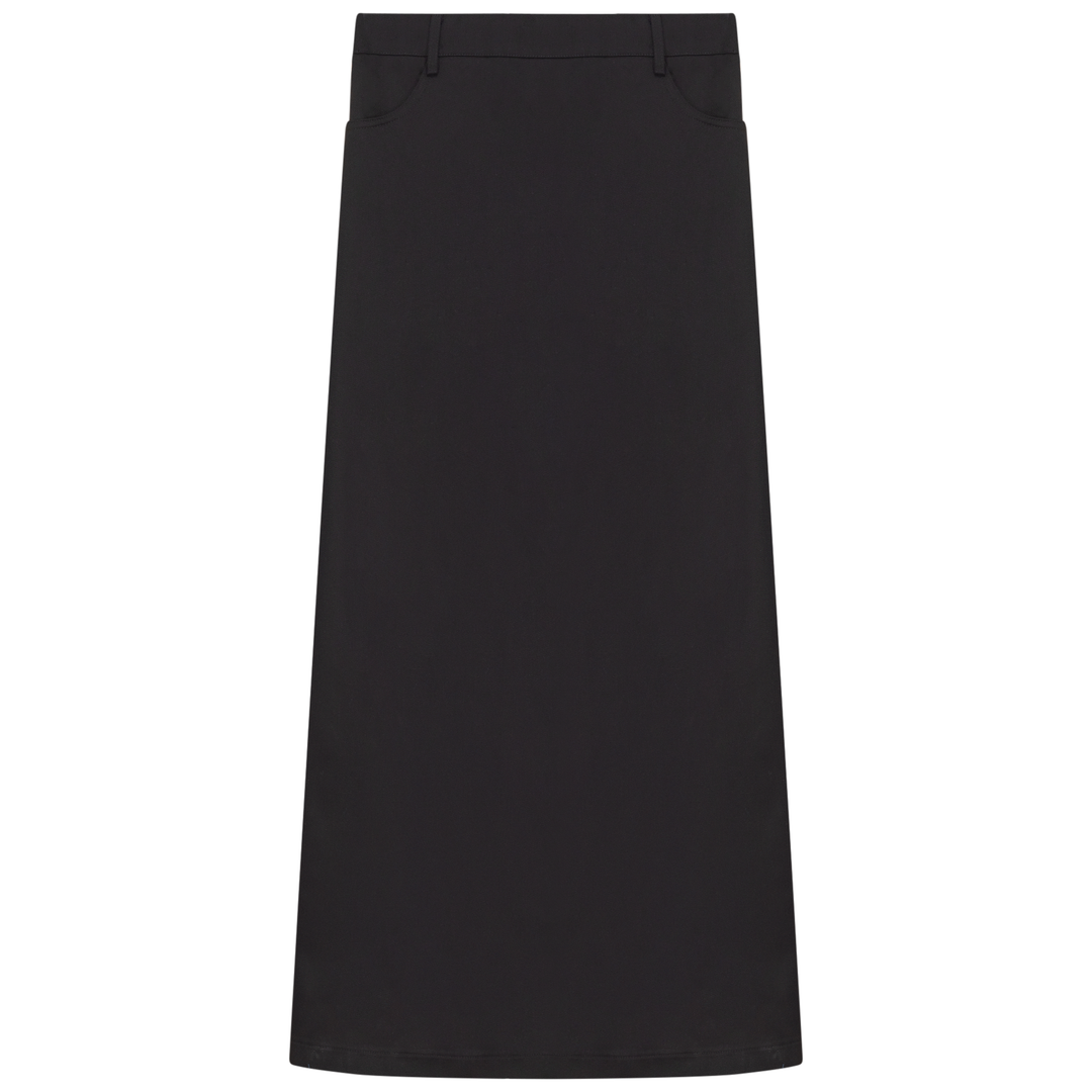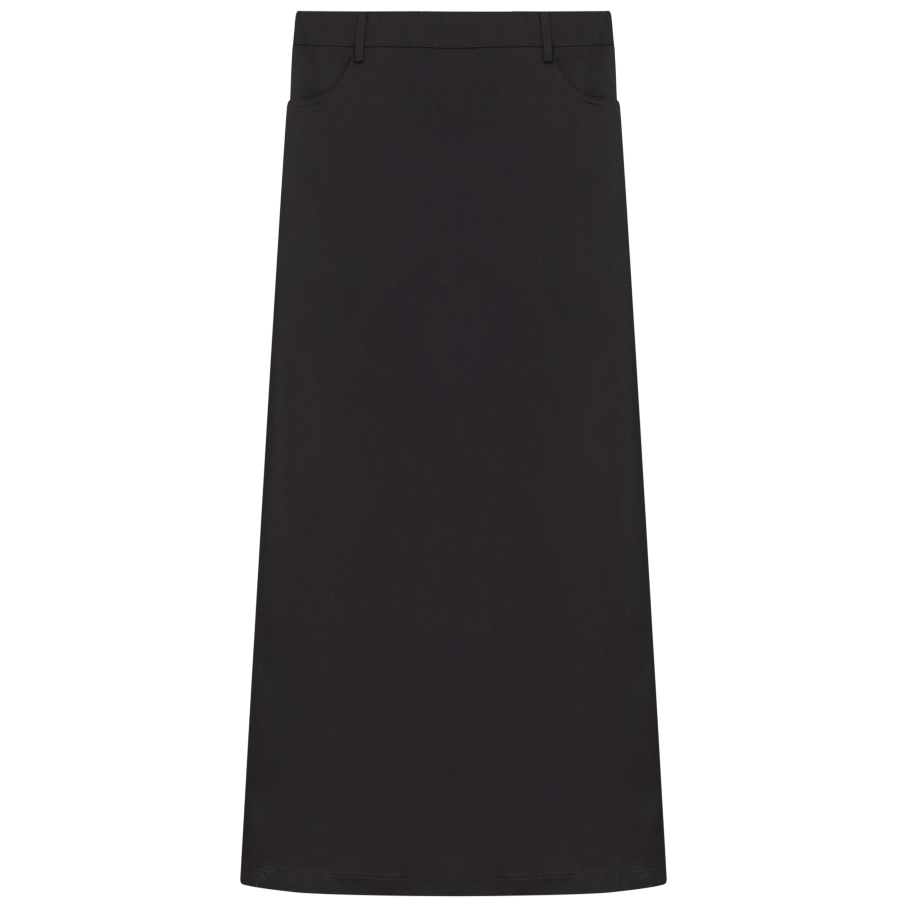 Ladies A-Line detailed maxi skirt with covered elastic waistband and belt loops at front. ֲ