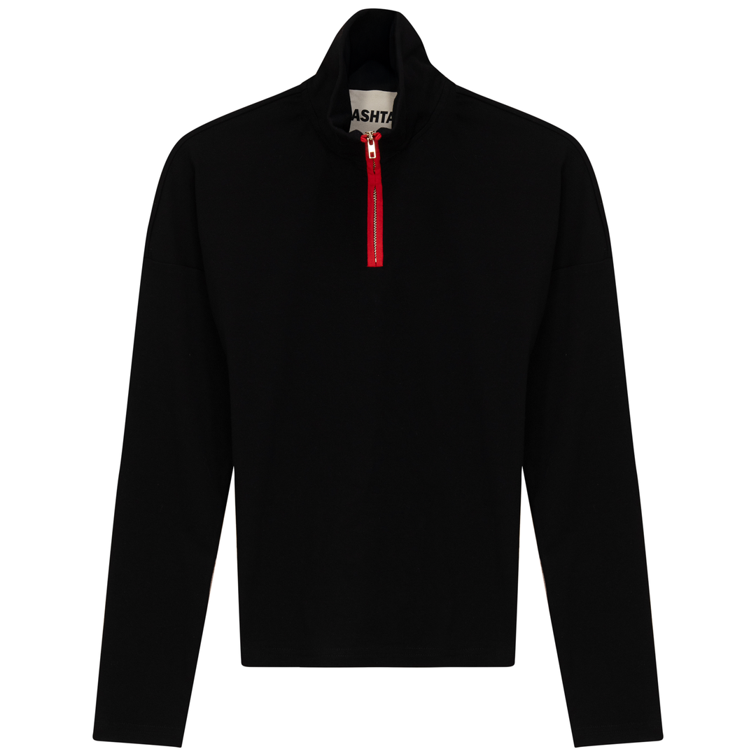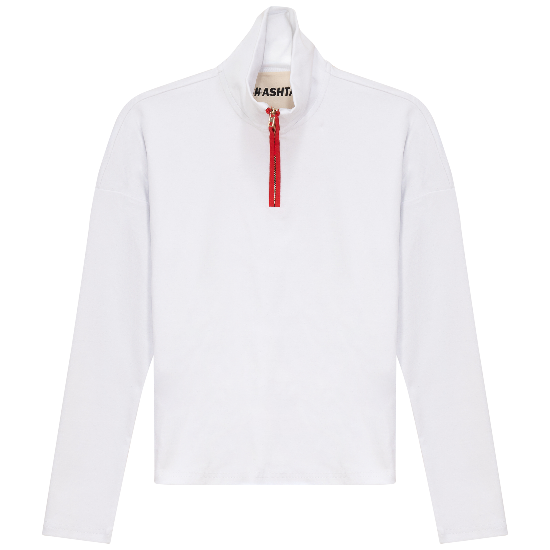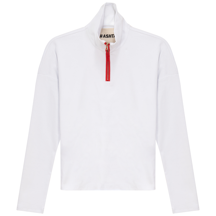 Ladies long sleeve color blocked ribbed henley tee with contrast zipper opening at front.ֲ