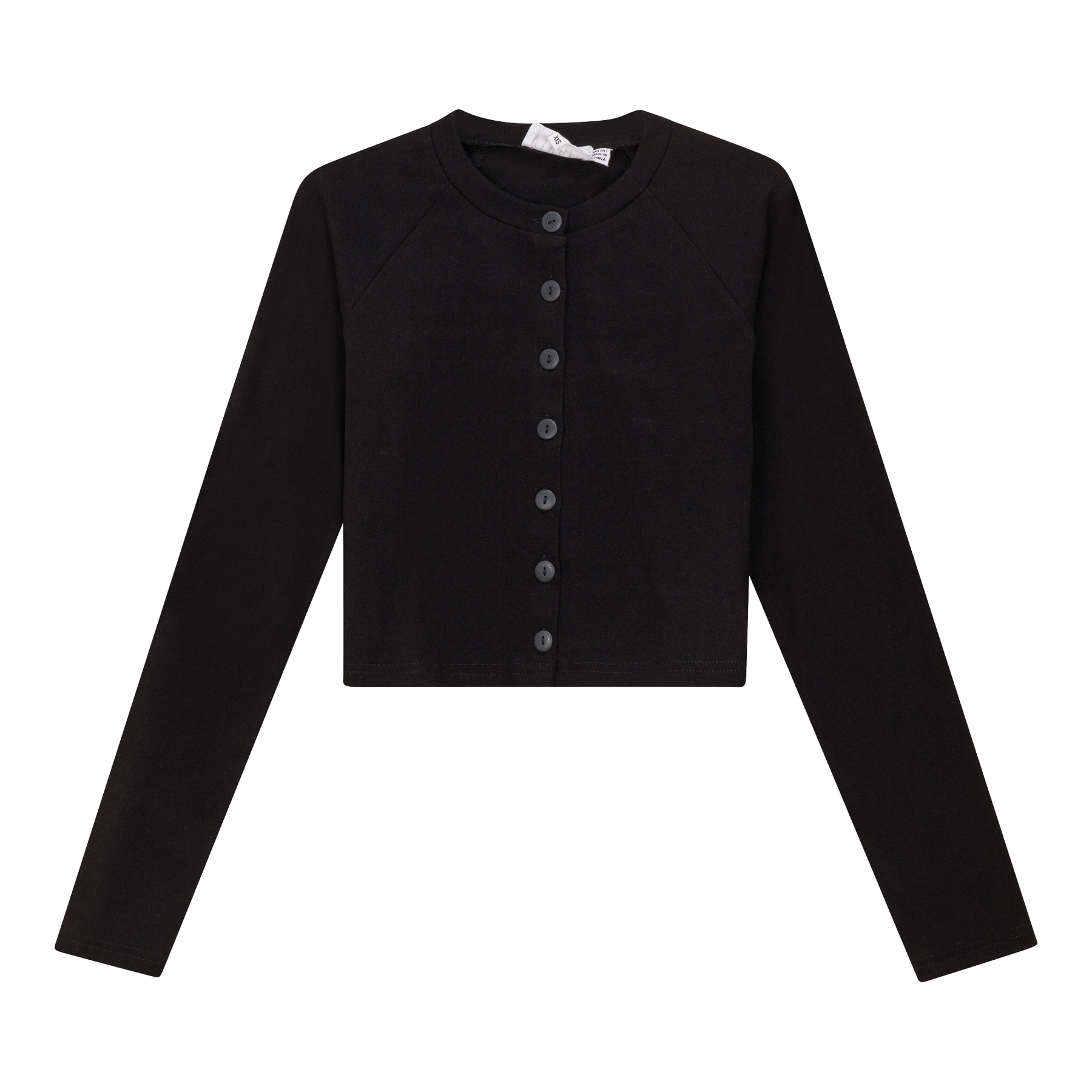 Ladies long sleeve ribbed cotton cropped cardigan with center front button opening.ֲ