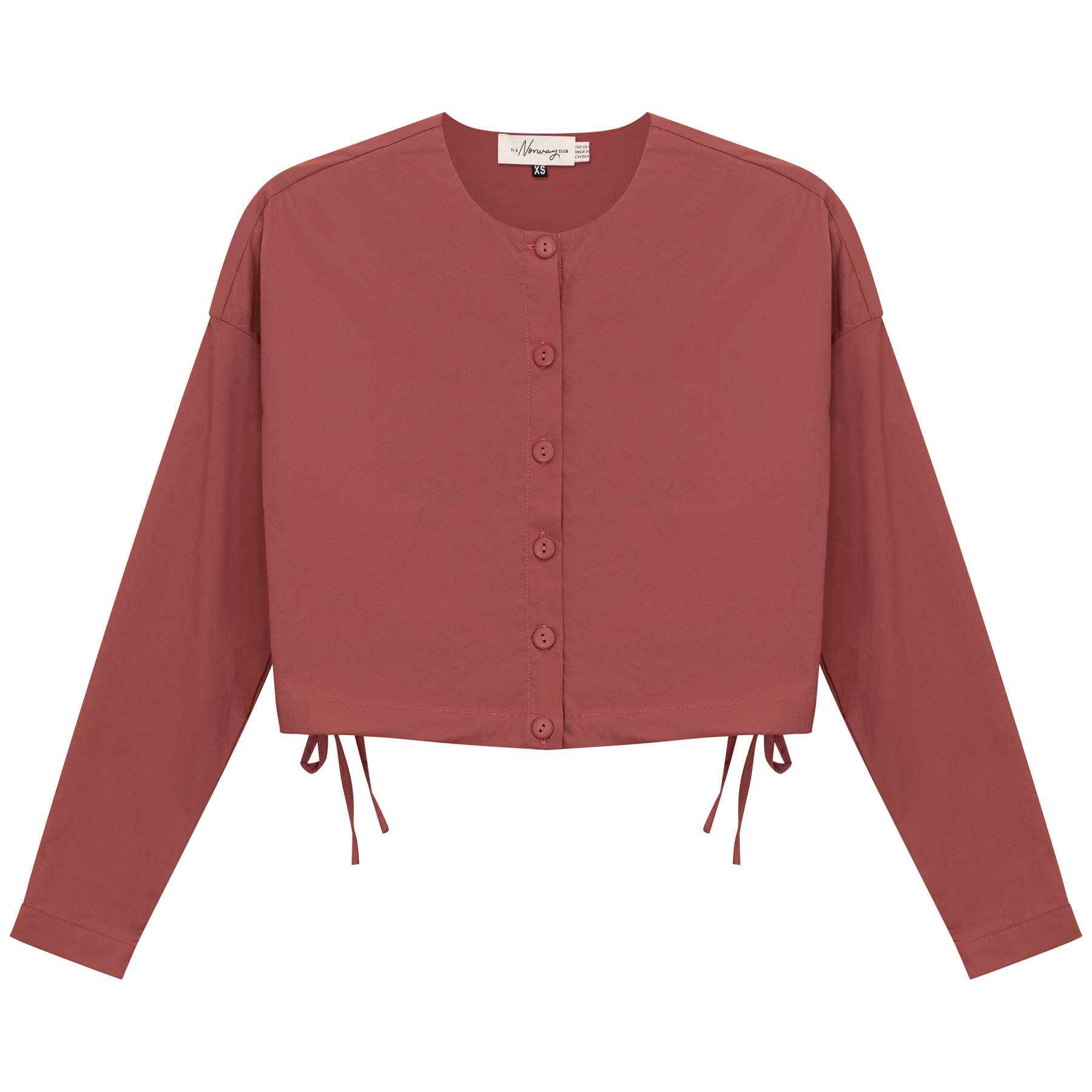 Ladies long sleeve cotton cropped blouse with center front button opening and side bungee tie. ֲAvailable in the foll...
