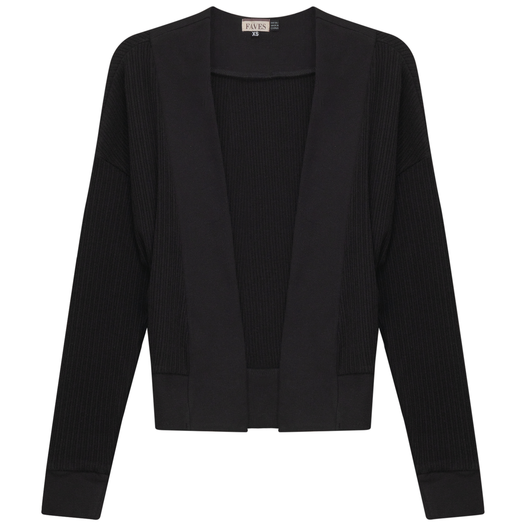 Ladies long sleeve cropped cable knit bolero with drop shoulders. ֲ