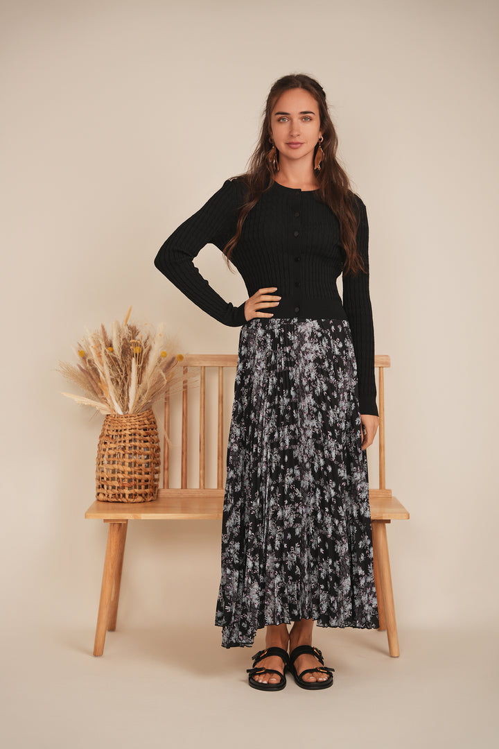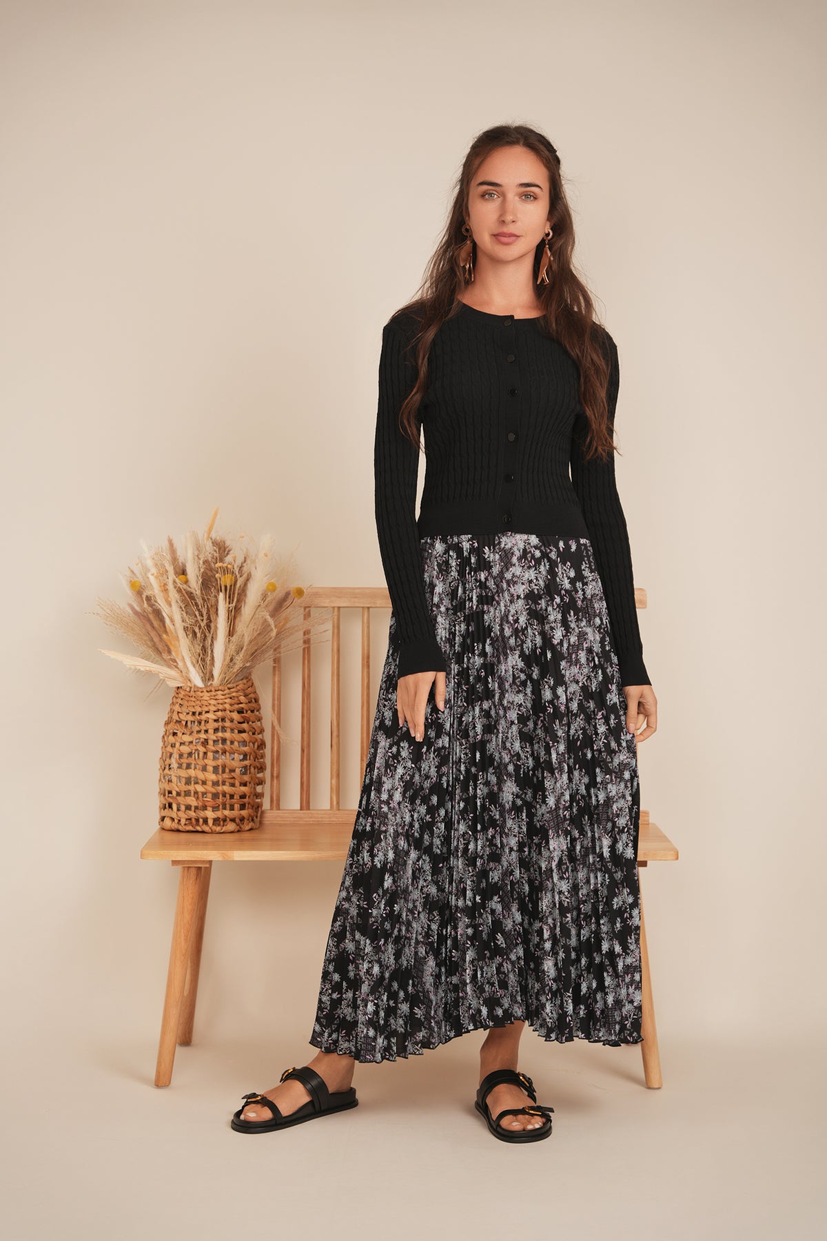Ladies cropped cable knit cardigan with center front marble button opening. ֲAvailable in the following colors: