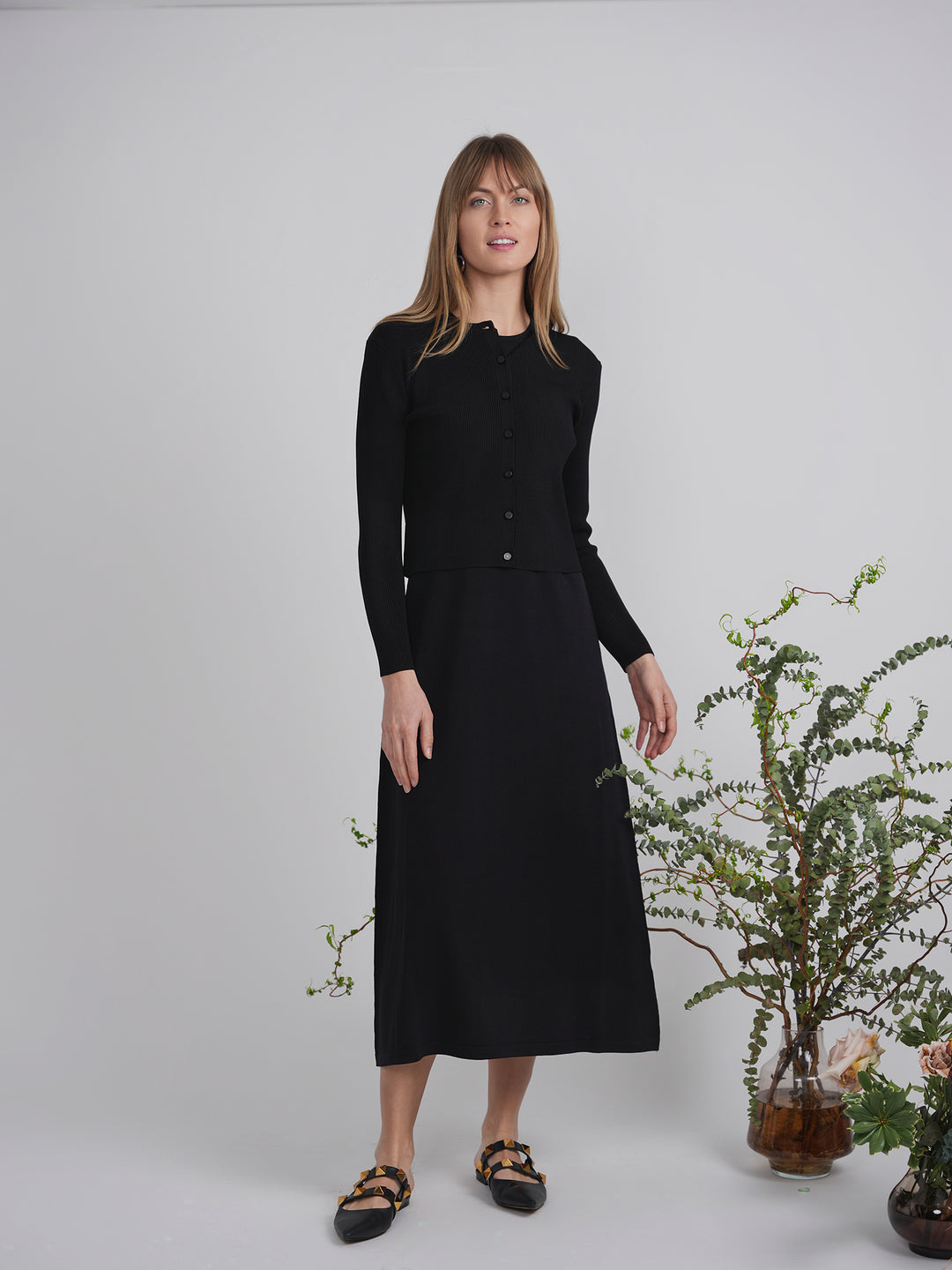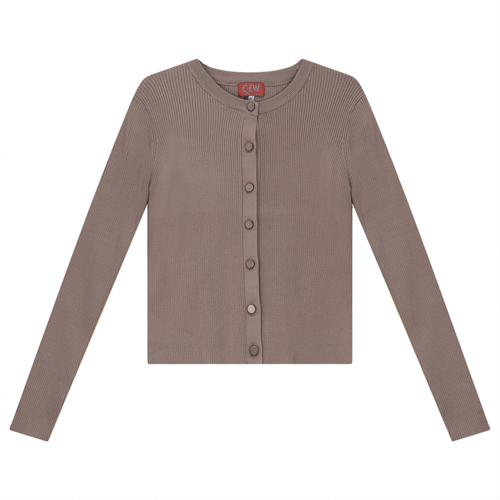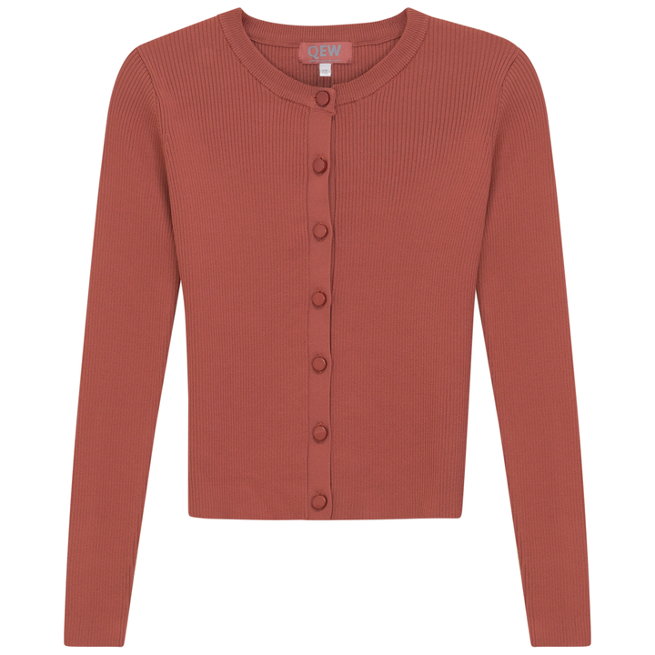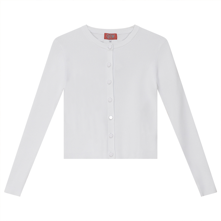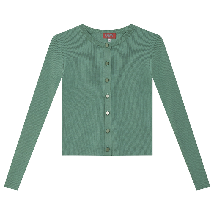 Ladies cropped knit cardigan with long sleeves and center front placket with buttonsֲ