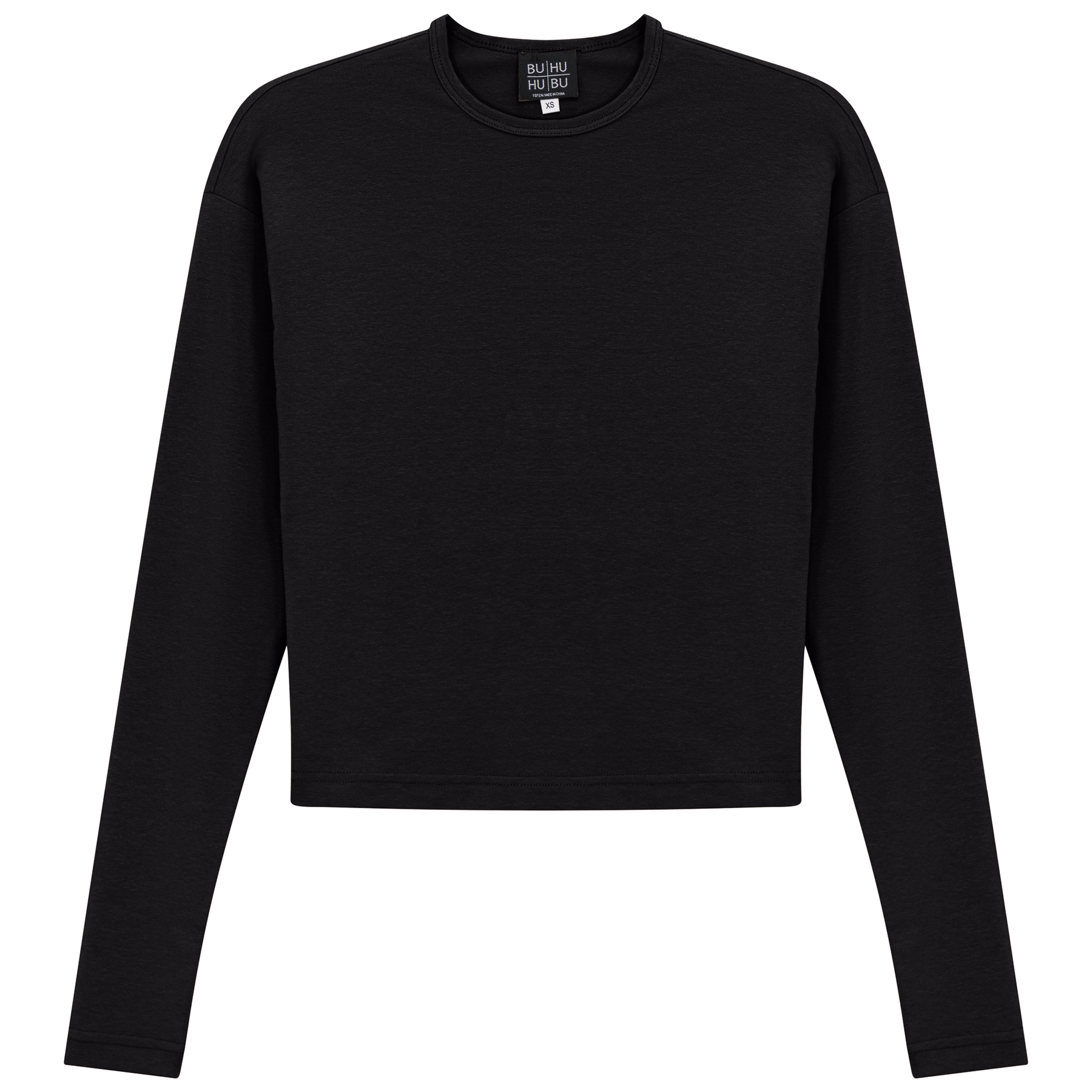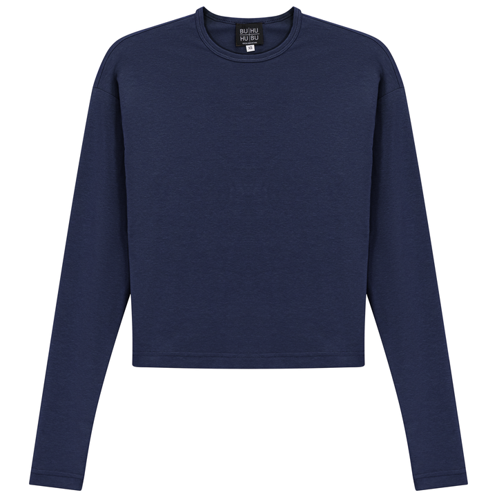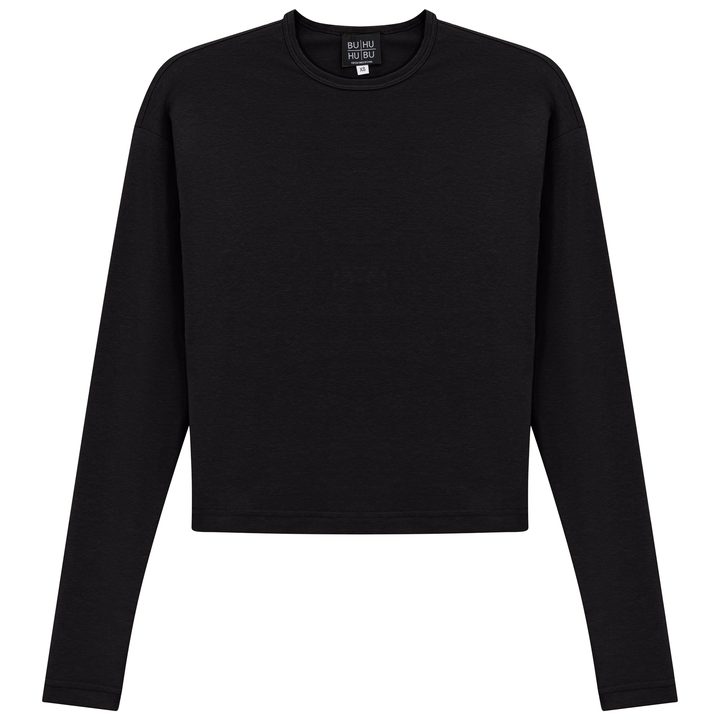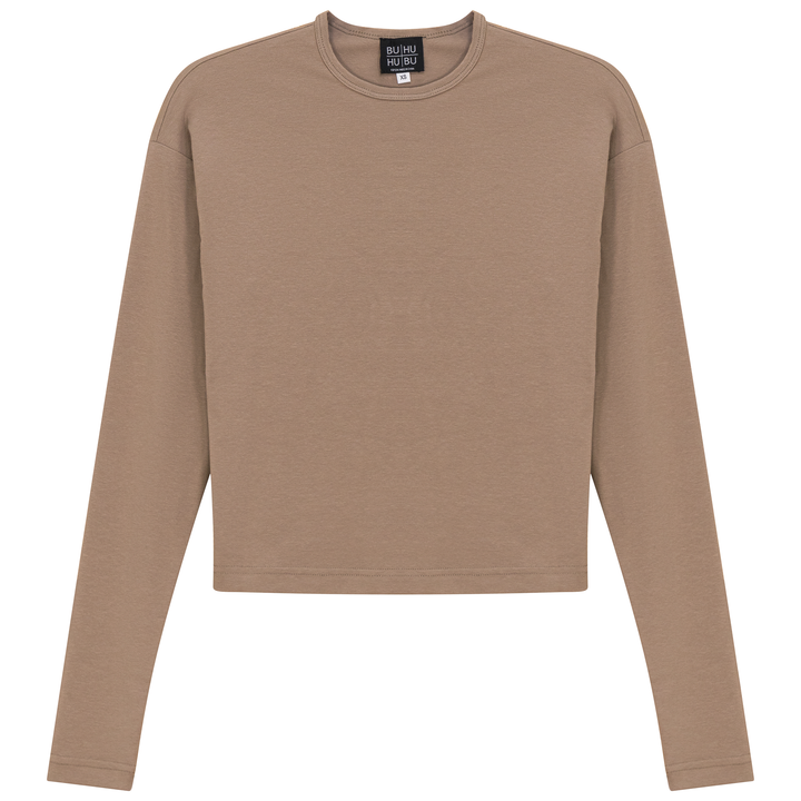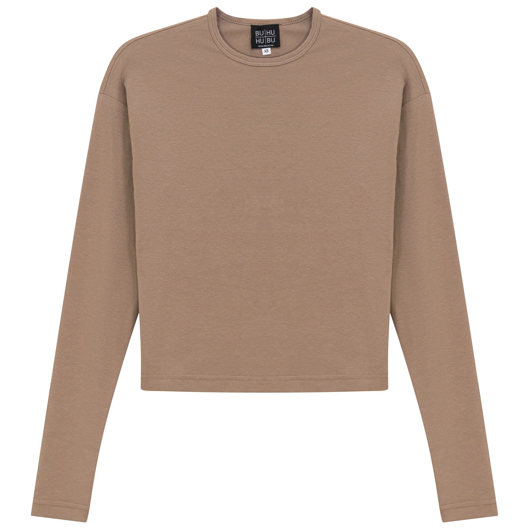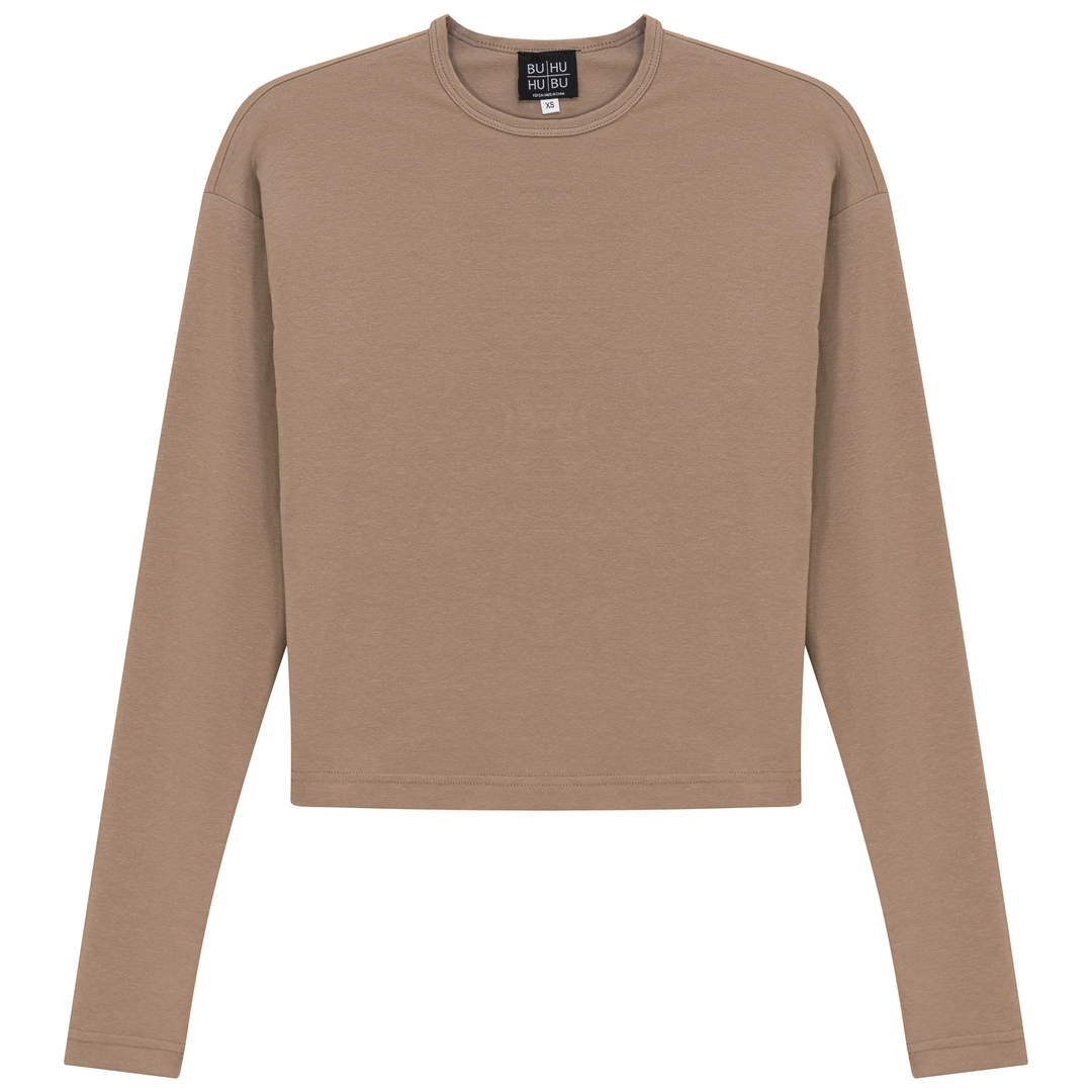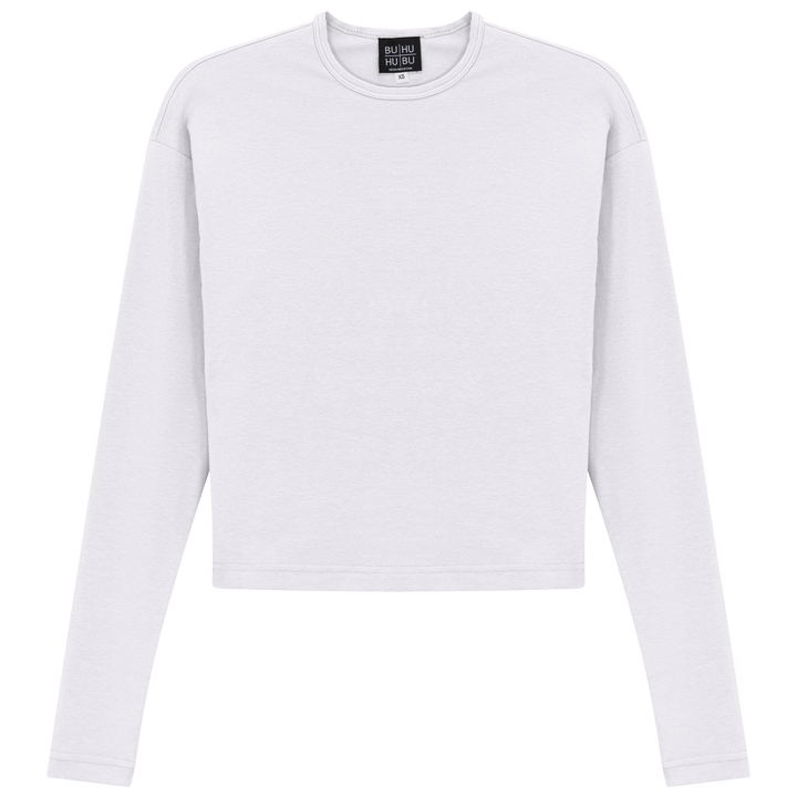 Ladies long sleeve cropped off shoulder ribbed top. ֲ