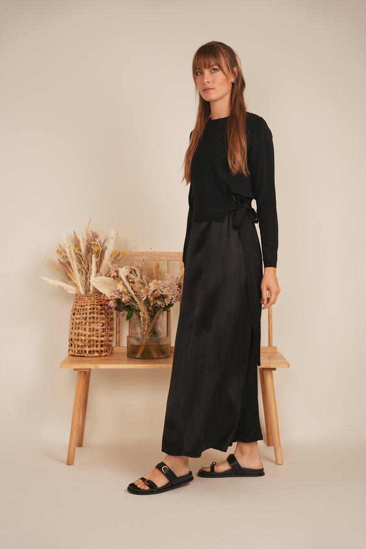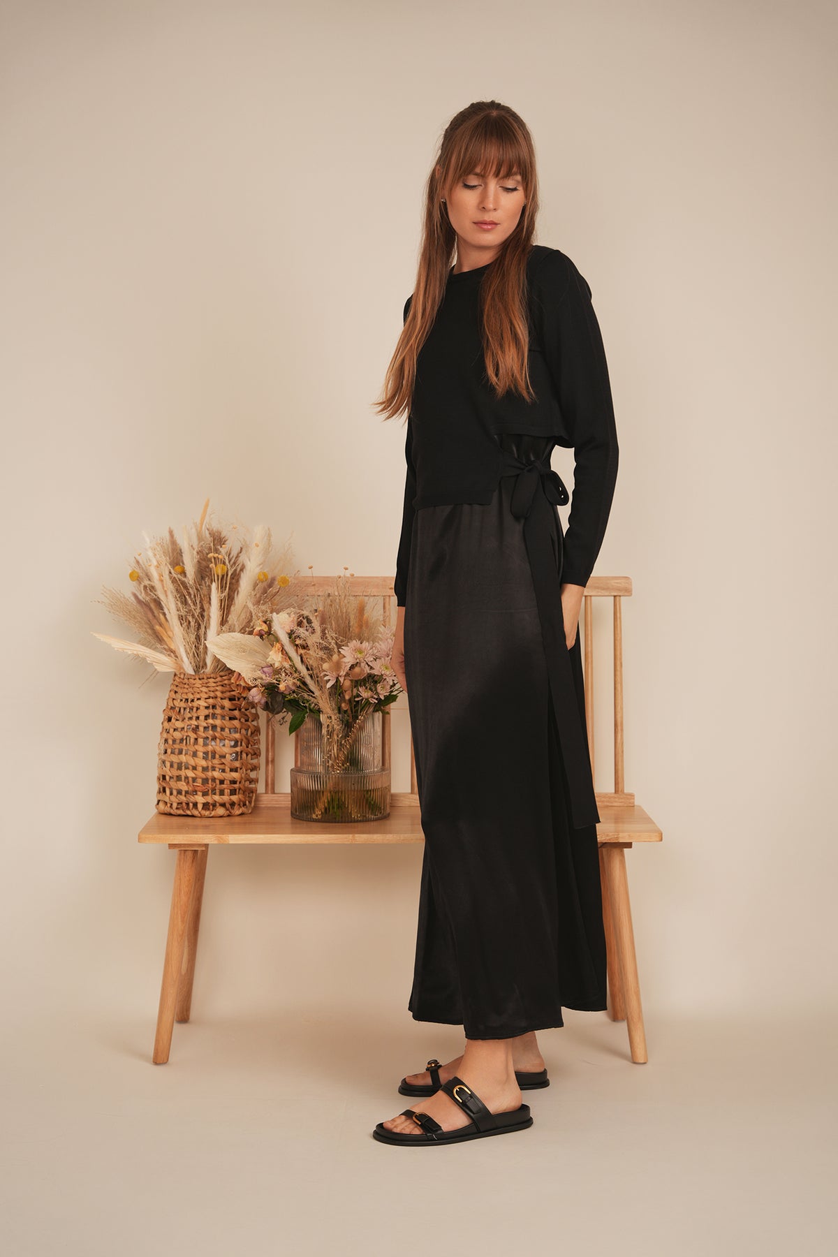 Ladies knit cropped top with tie at left side bottom. ֲ