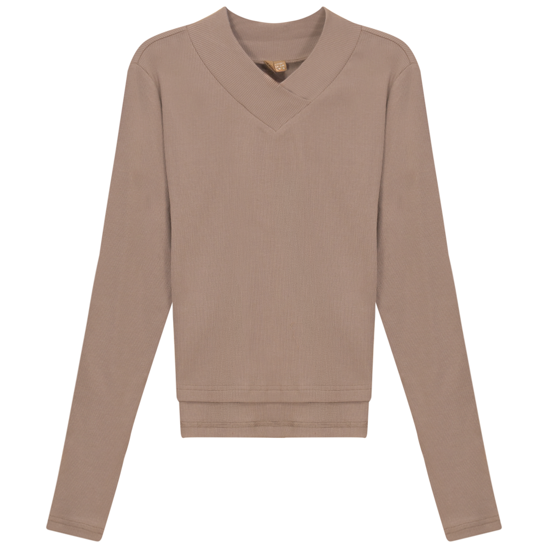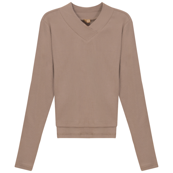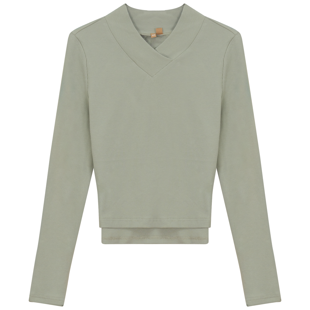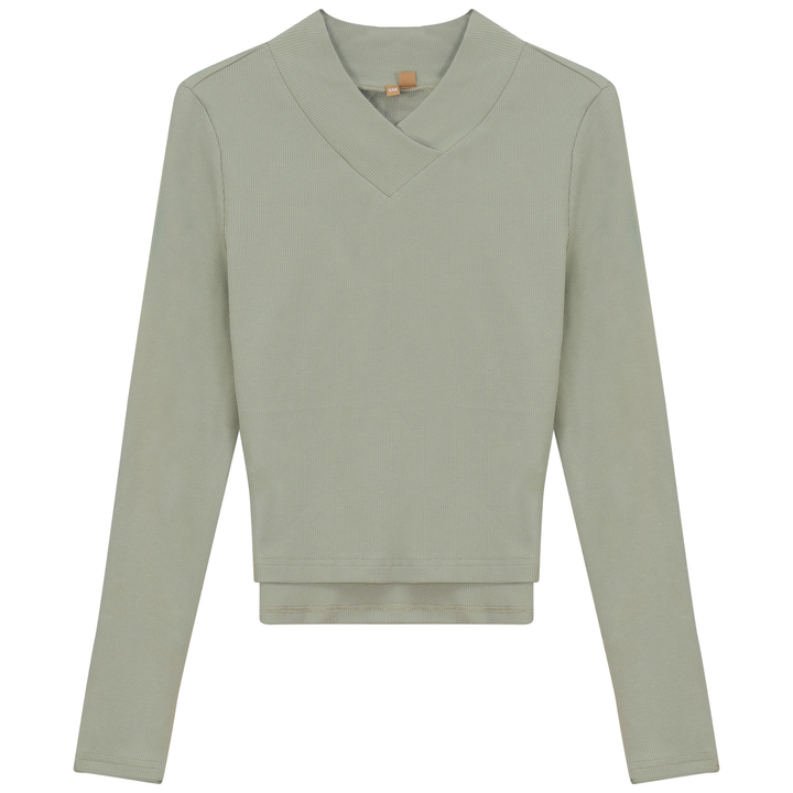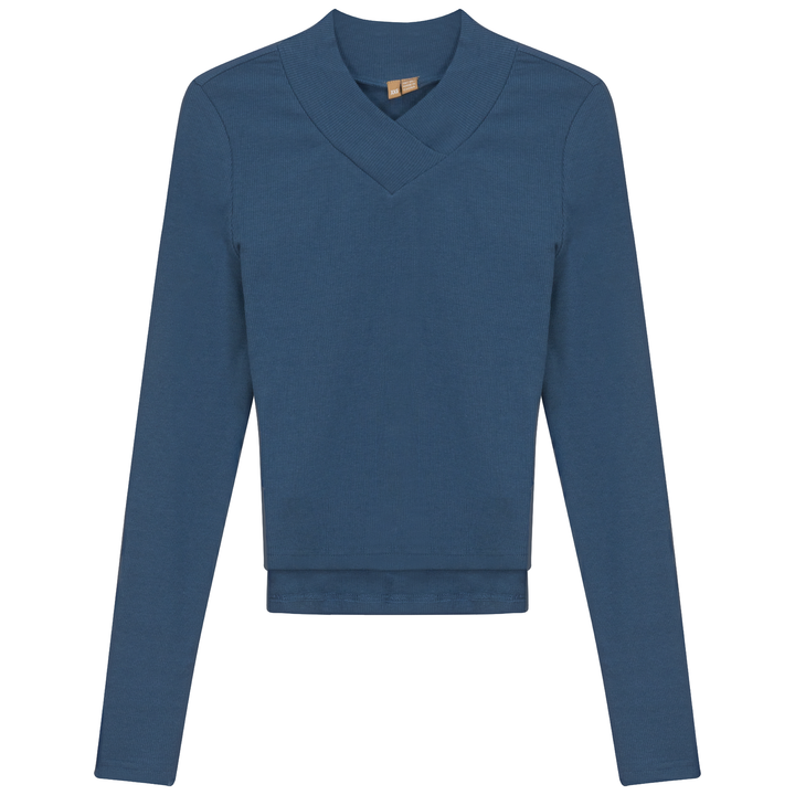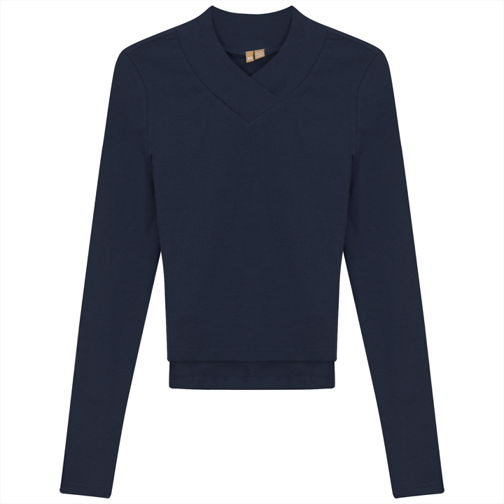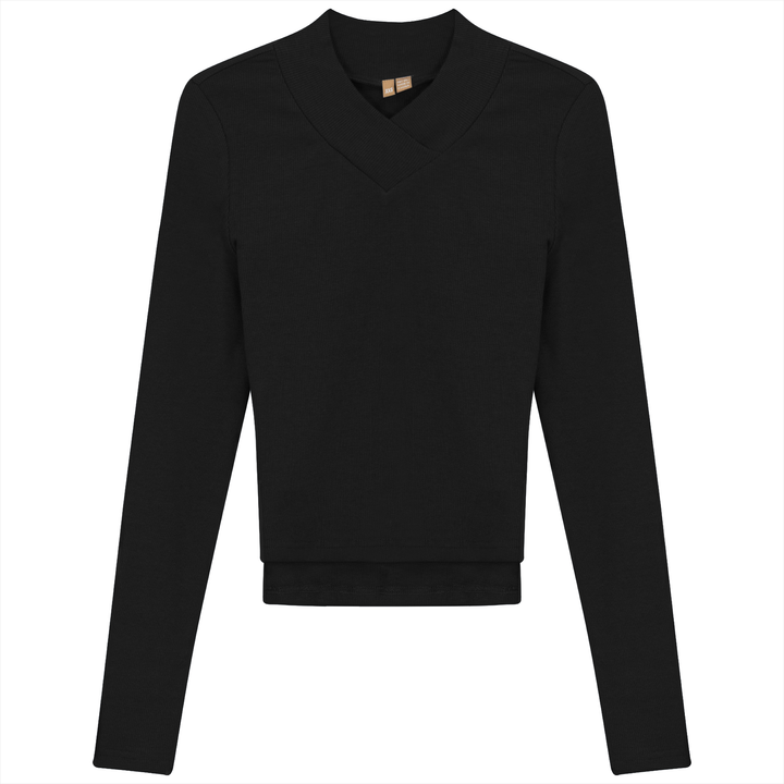 Ladies long sleeve ribbed cropped large v neck top. ֲ