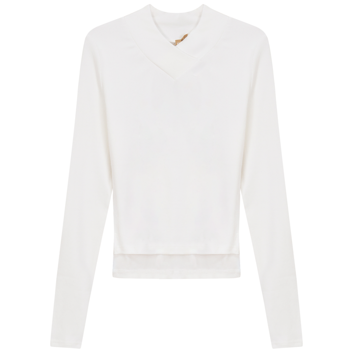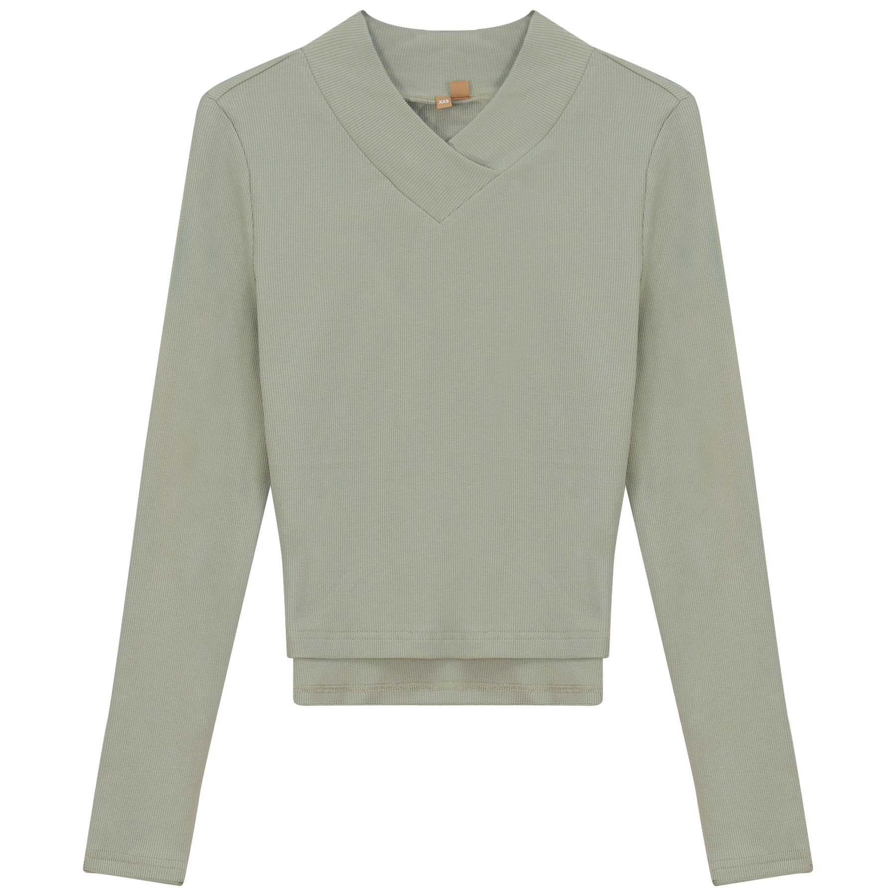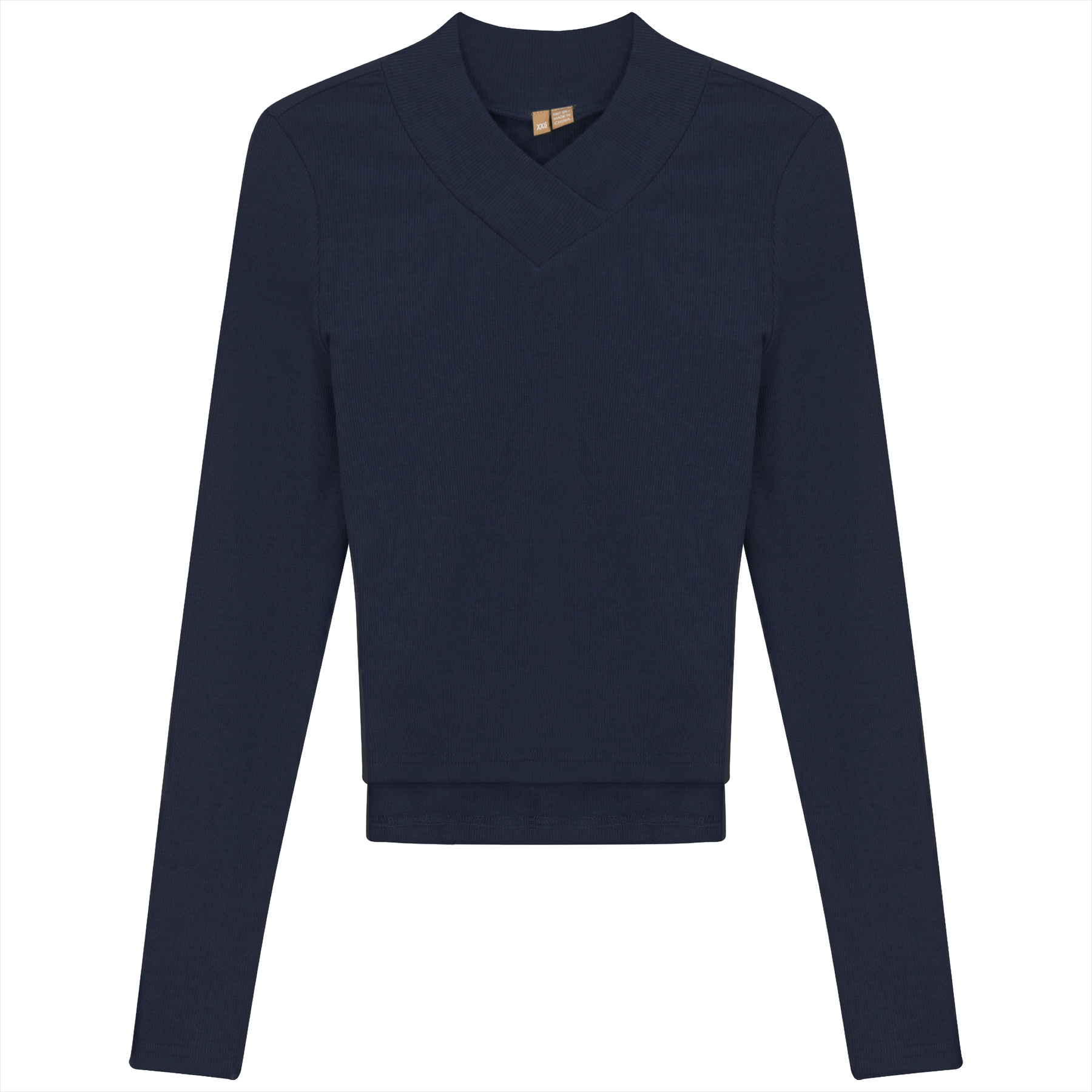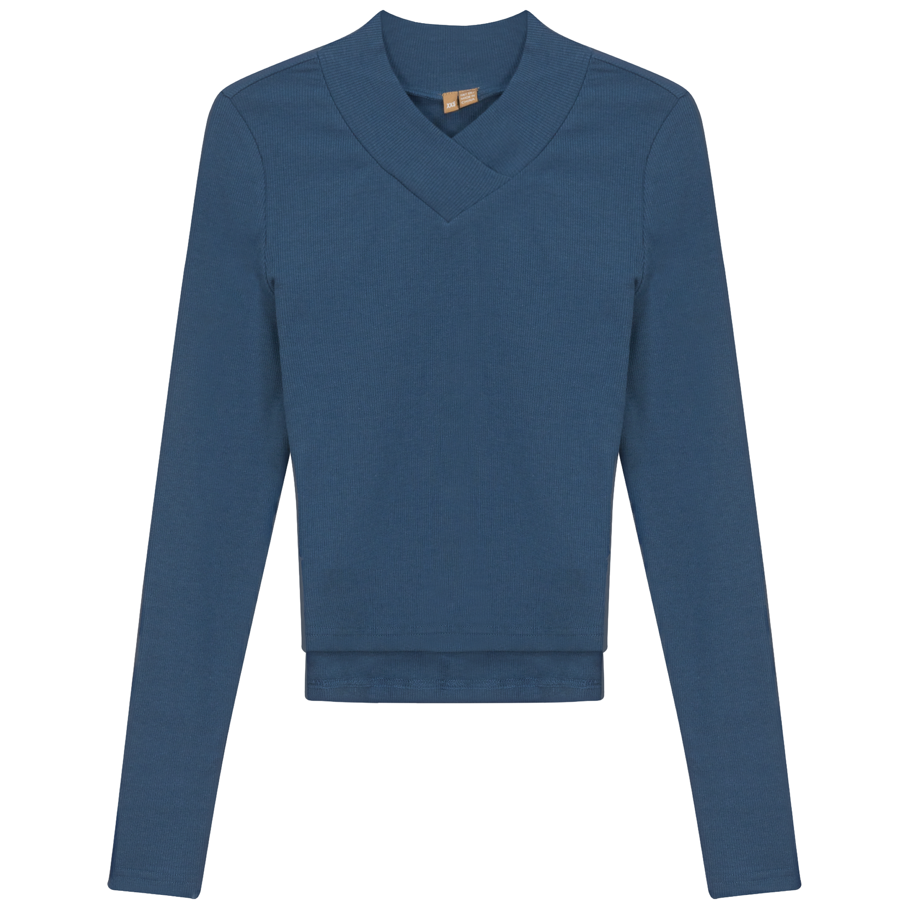 Ladies long sleeve ribbed cropped large v neck top. ֲ