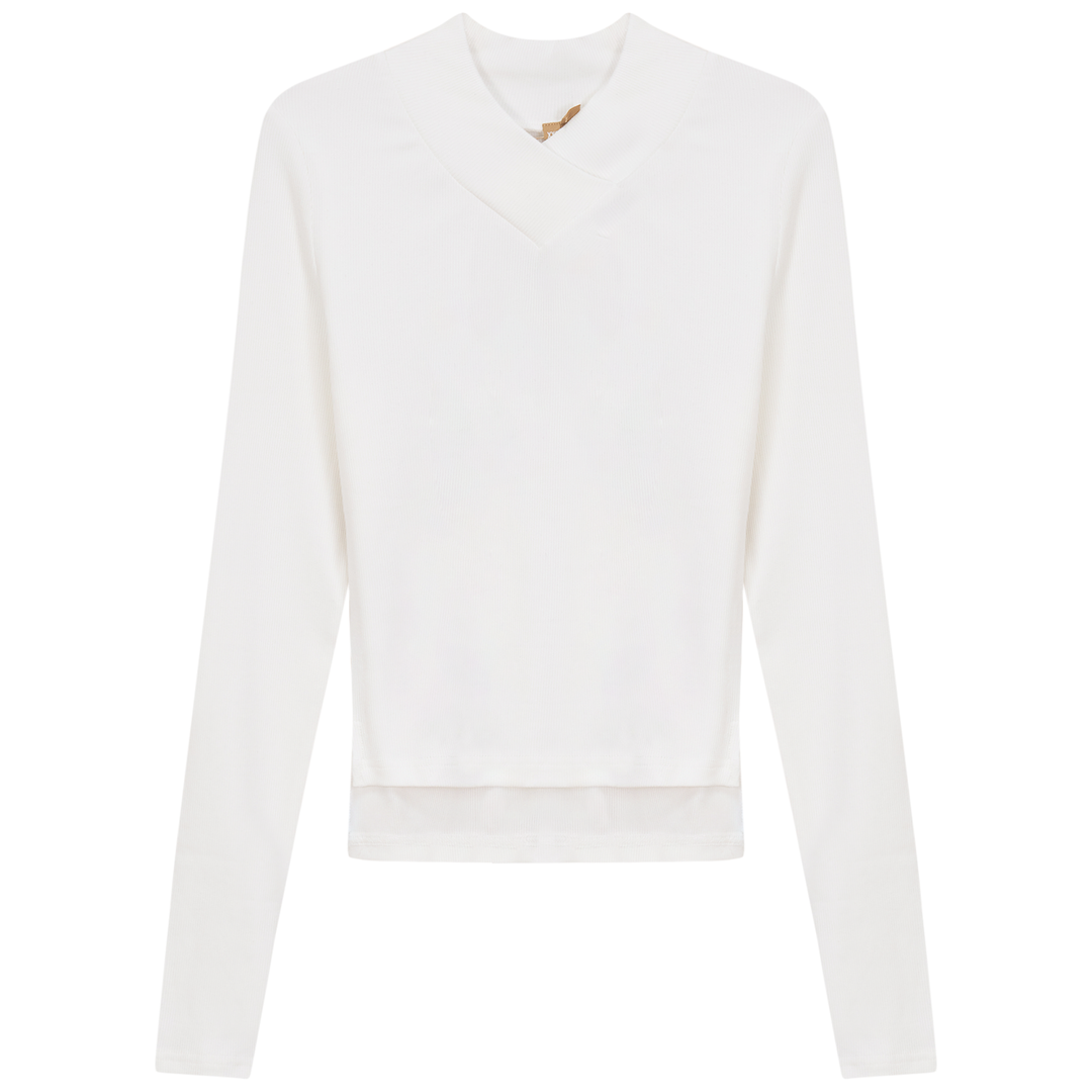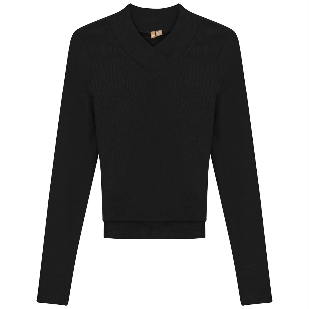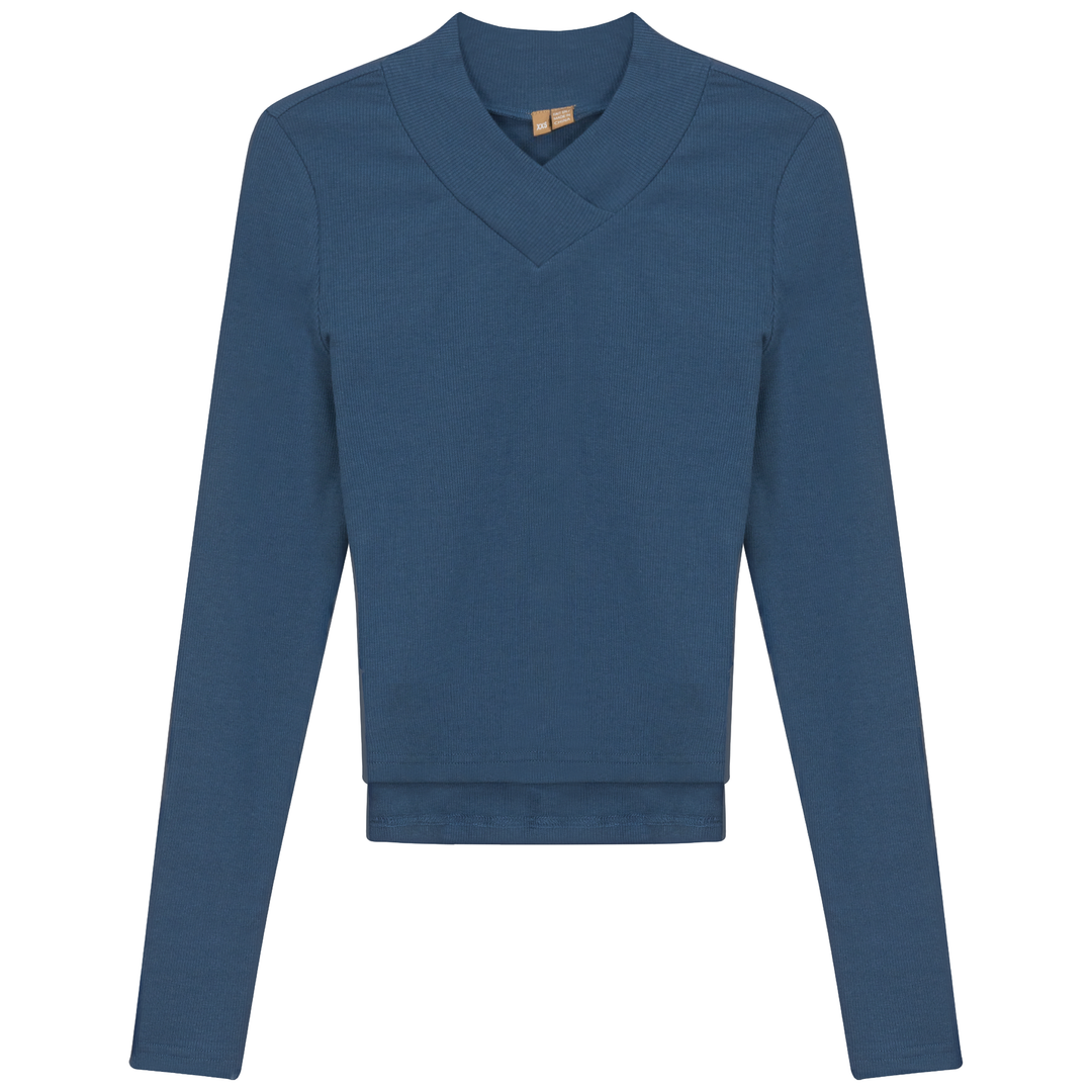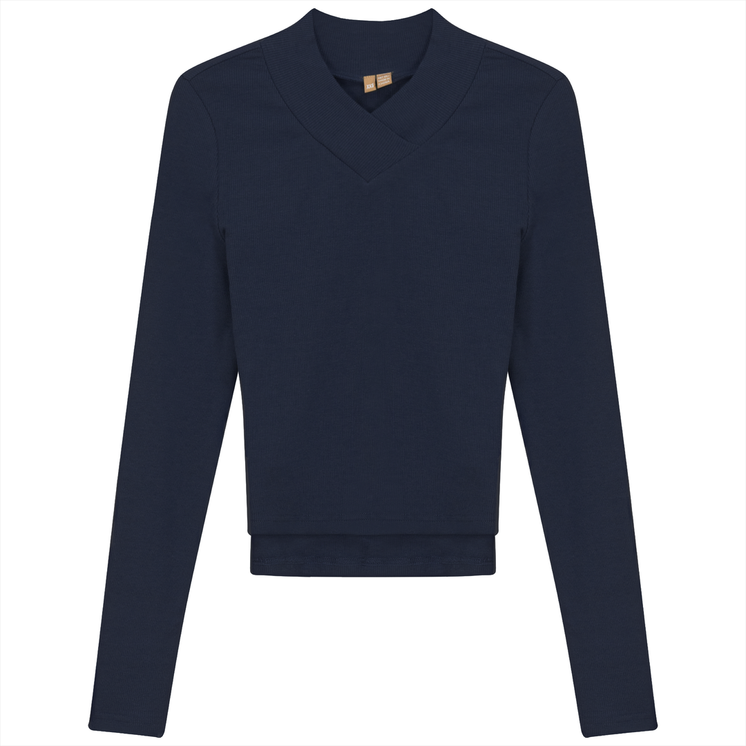 Ladies long sleeve ribbed cropped large v neck top. ֲAvailable in the following colors: