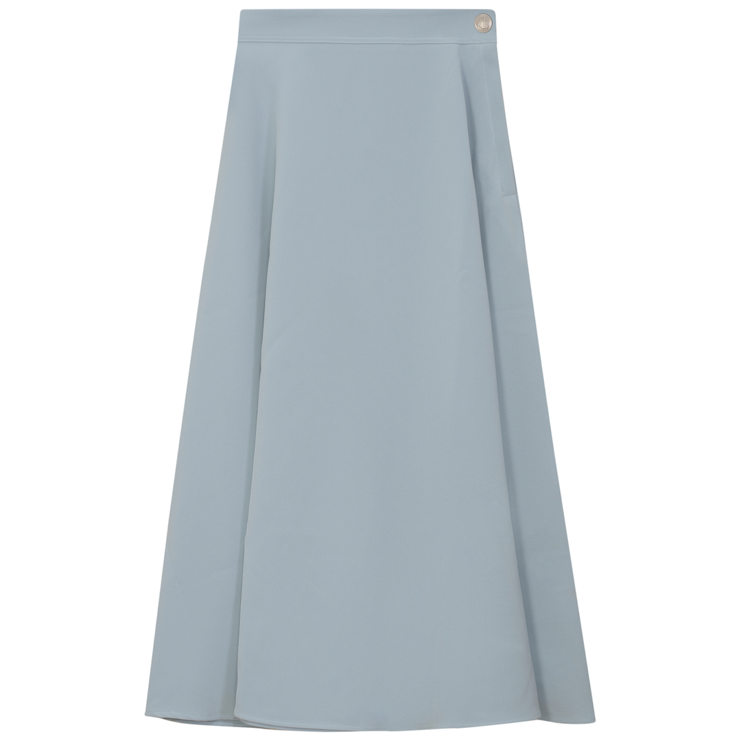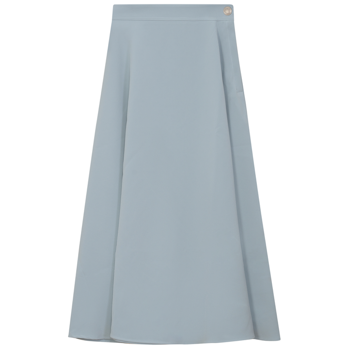 Ladies midi a line crepe skirt with side zipper and button on left side. ֲ