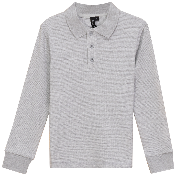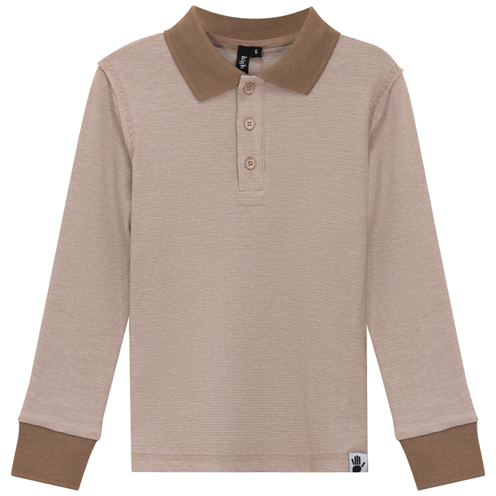Boys long sleeve mini stripped ribbed polo with center front button opening.ֲ
