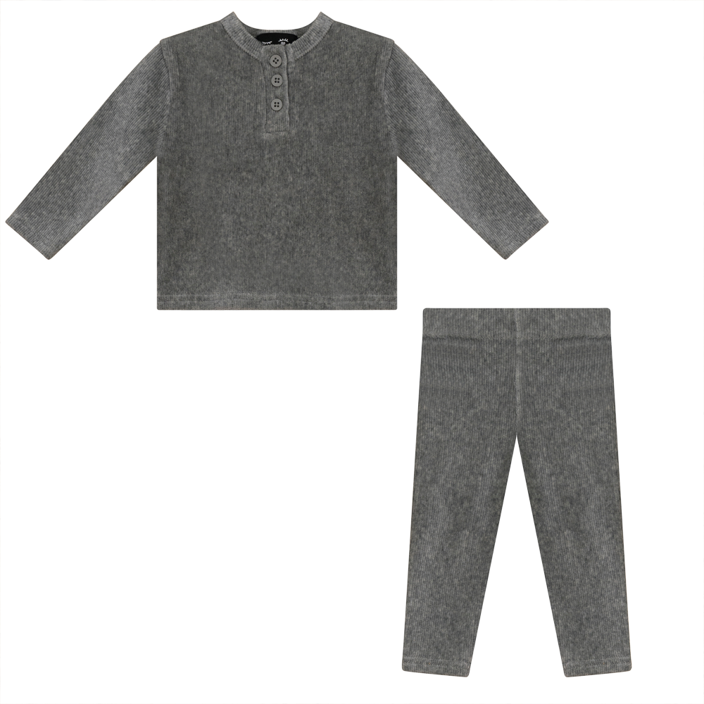 Dress your little one in style and comfort with our Mini Velour Rib 2 PC Set. This adorable set includes a long-sleeved top with a center front placket and matching bottoms featuring an elastic waistband for easy wear. The ribbed velour fabric adds a touch of luxury and warmth, making it perfect for any occasion.