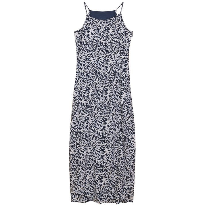 Ladies printed linen maxi dress with spaghetti bra strap and left side invisible zipper. ֲ