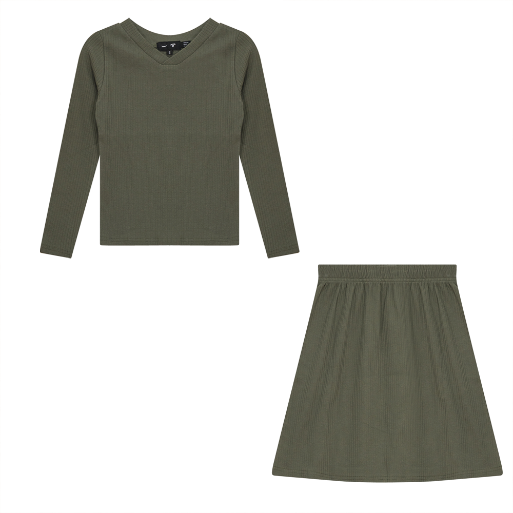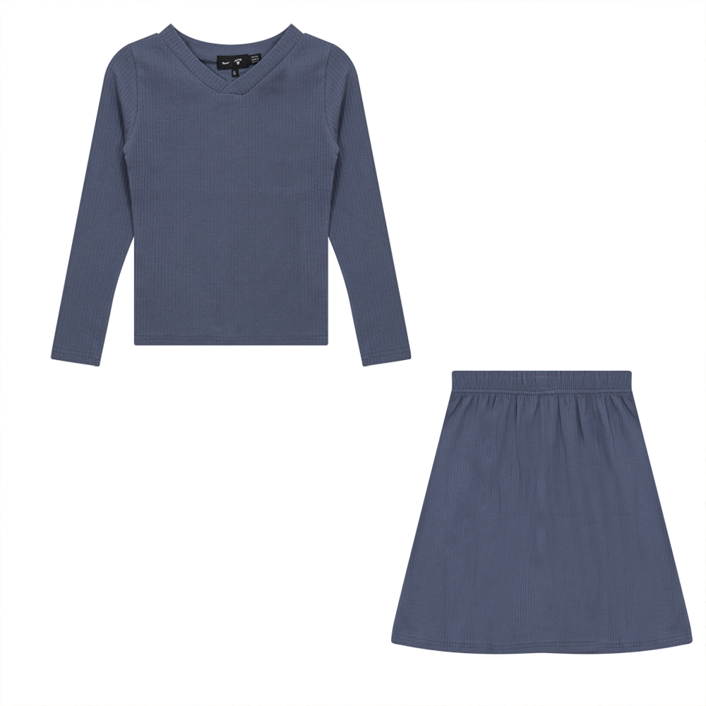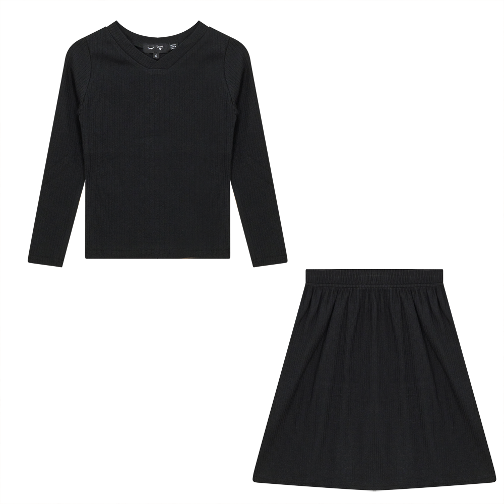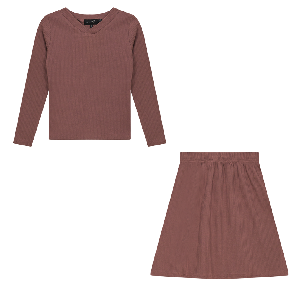 Girls rib 2 piece set.Long sleeves top with V-neck and matching skirt with covered elastic waistband ֲ