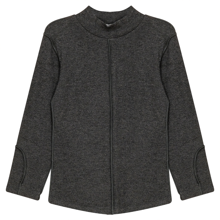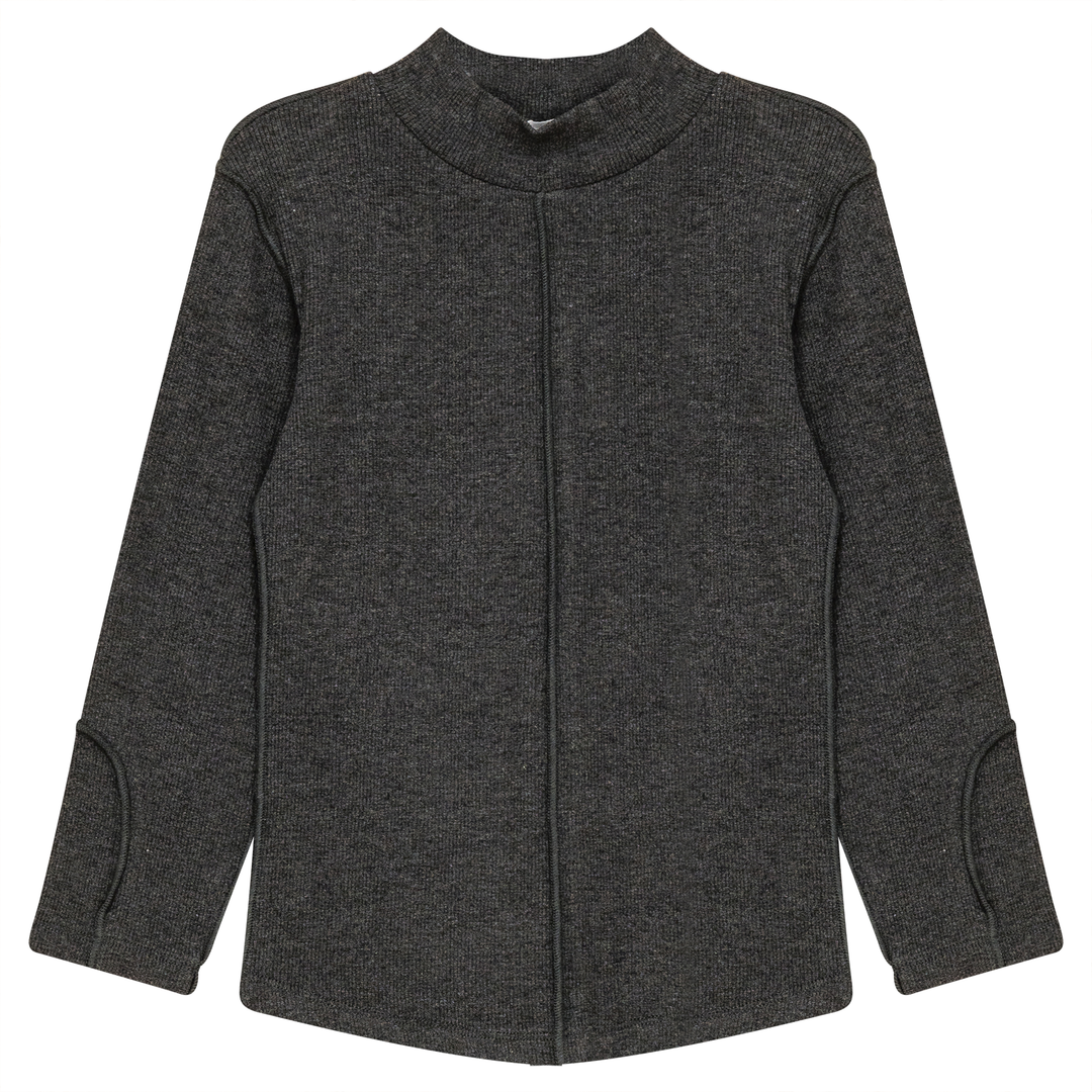 Girls long sleeve ribbed mock neck top with merrow edge. ֲ