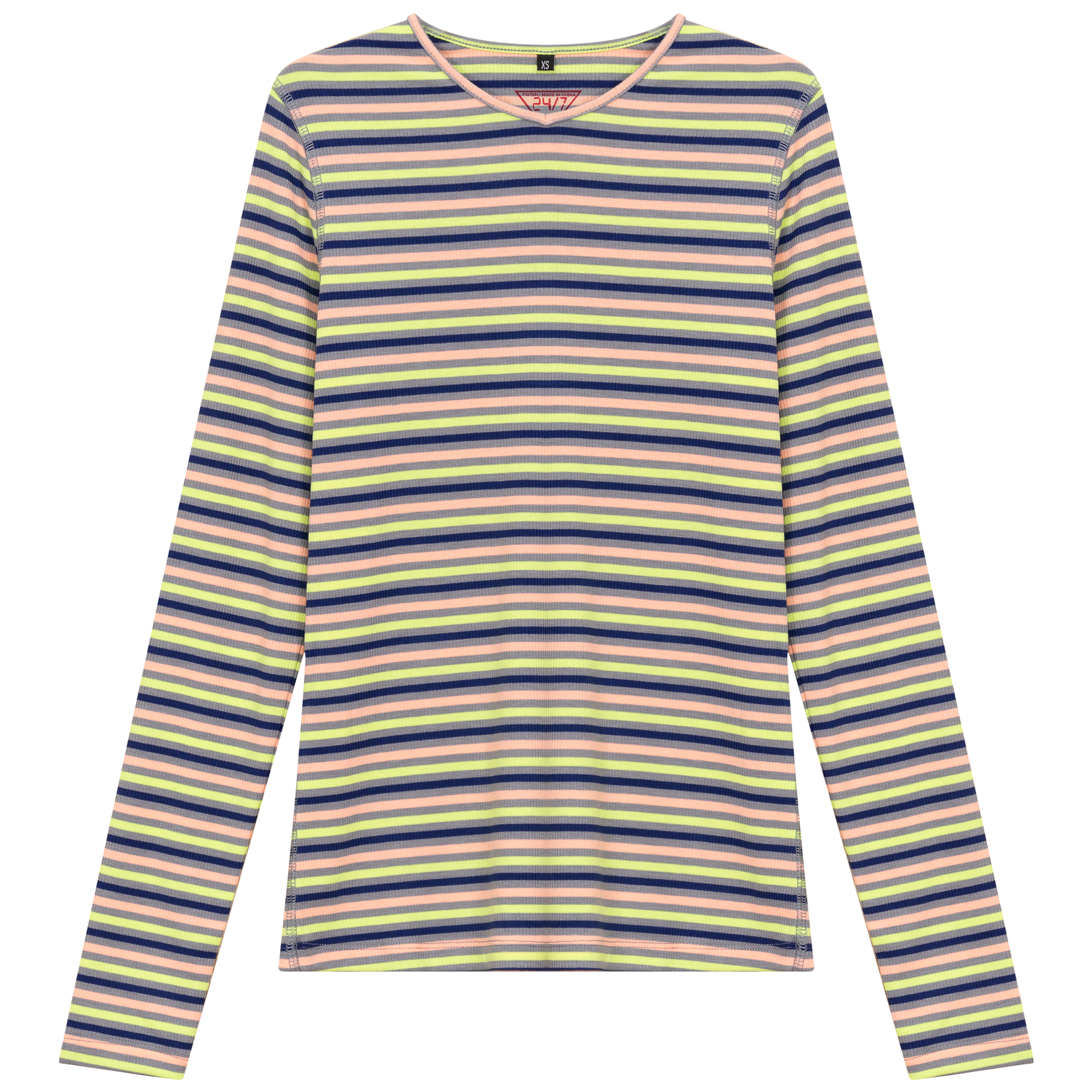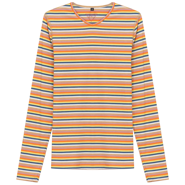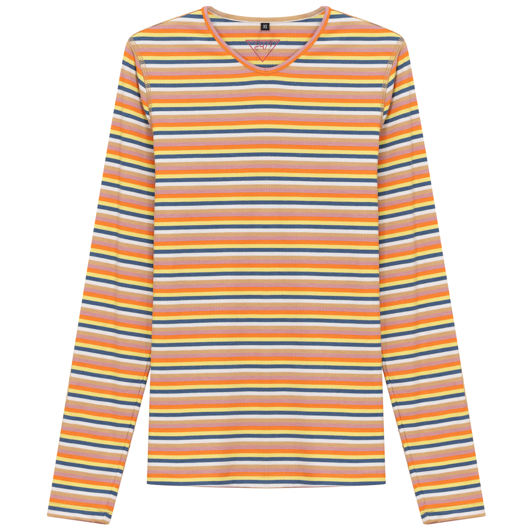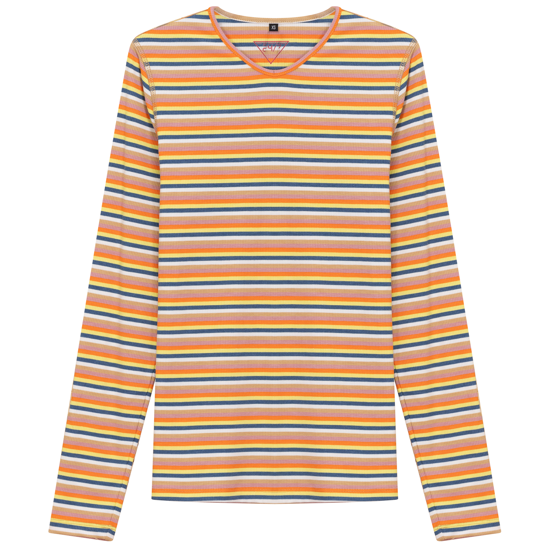 Ladies long sleeve stripped ribbed v neck top.ֲ