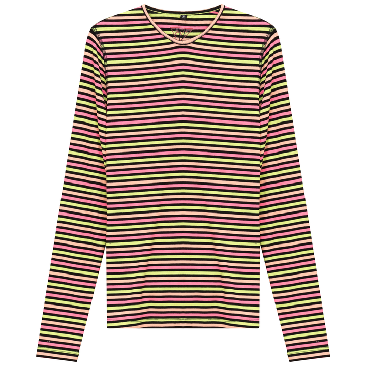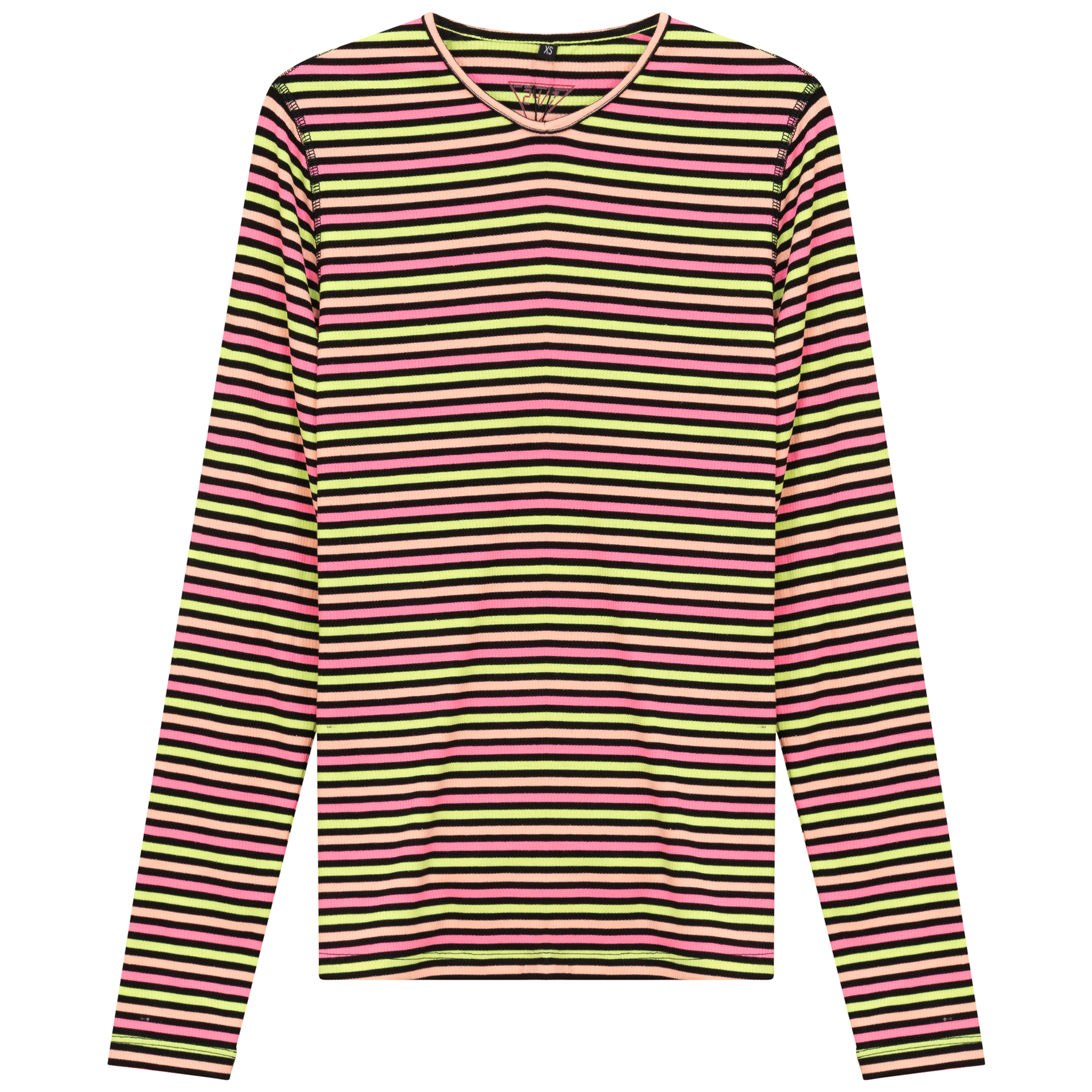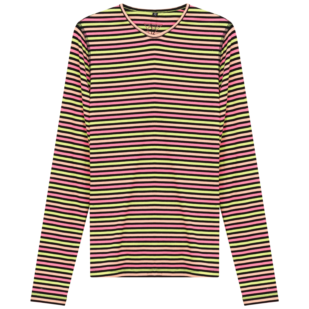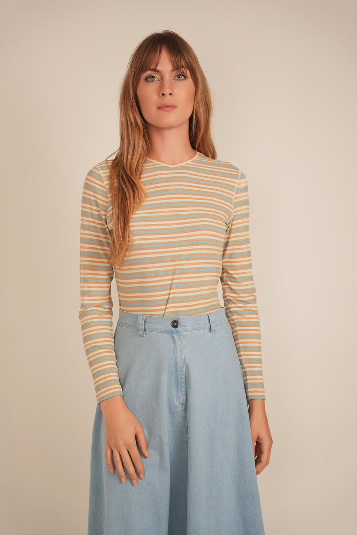 Ladies long sleeve stripped ribbed v neck top.ֲ