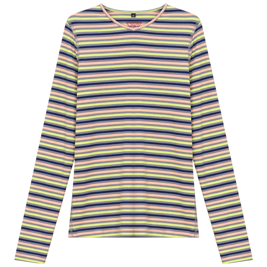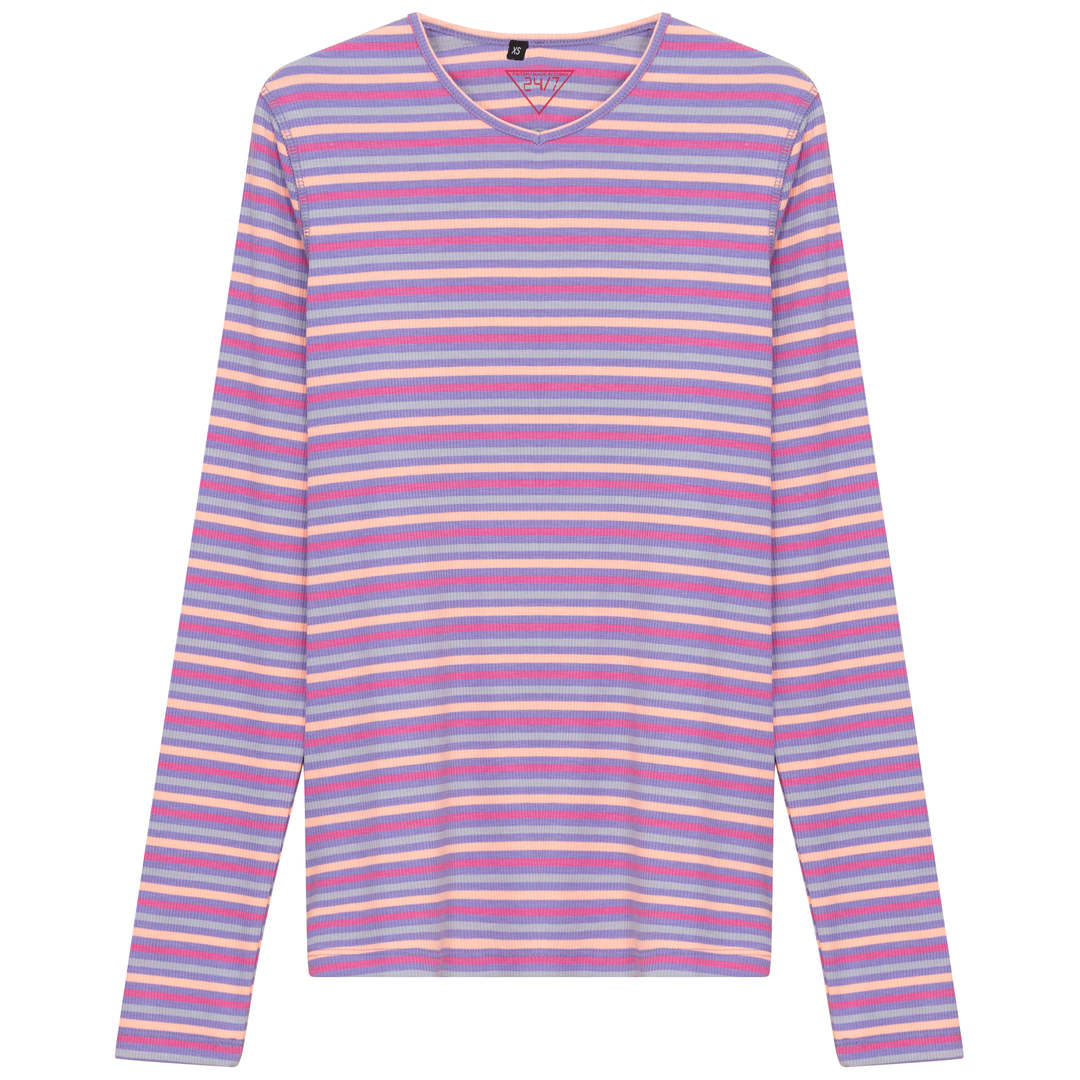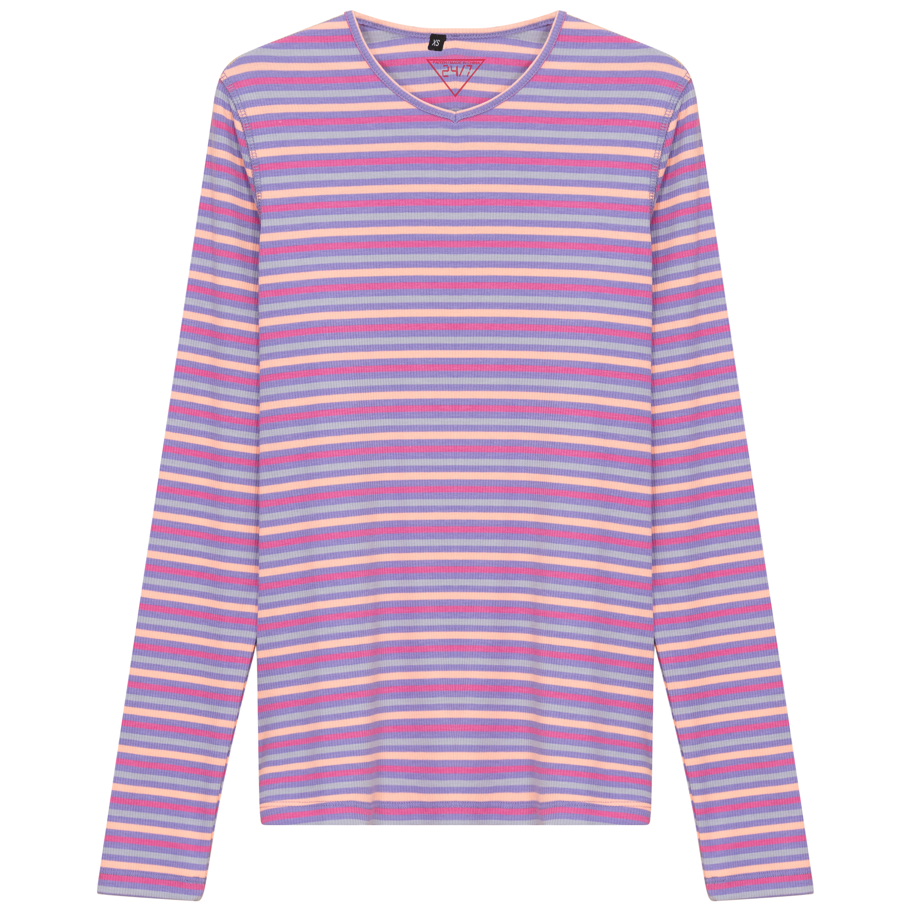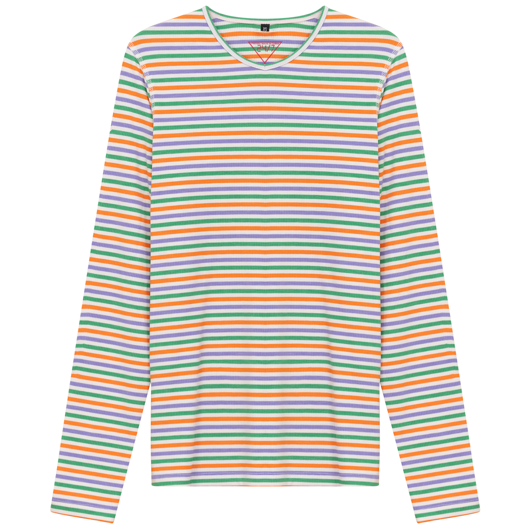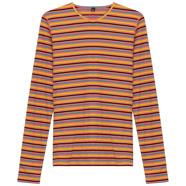Ladies long sleeve stripped ribbed v neck top.ֲAvailable in the following colors: