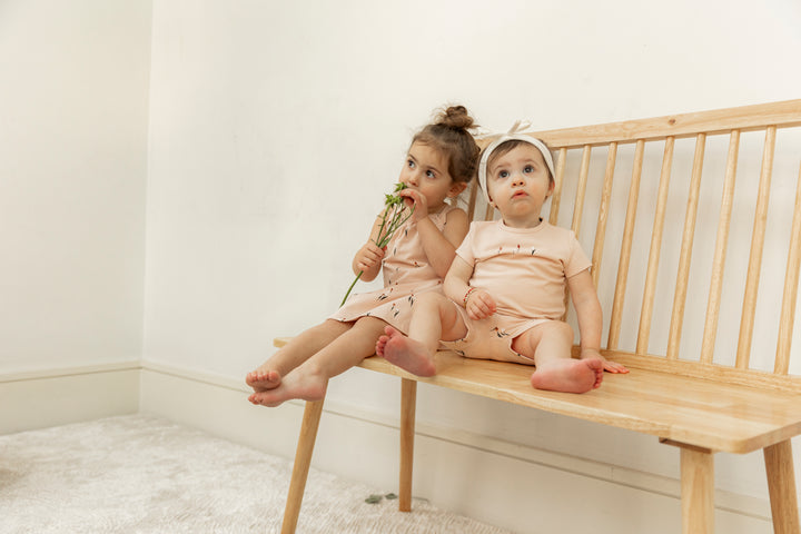Girls thin fleece allover tulip printed jumper with ruffle straps and elastic encassed. ֲ