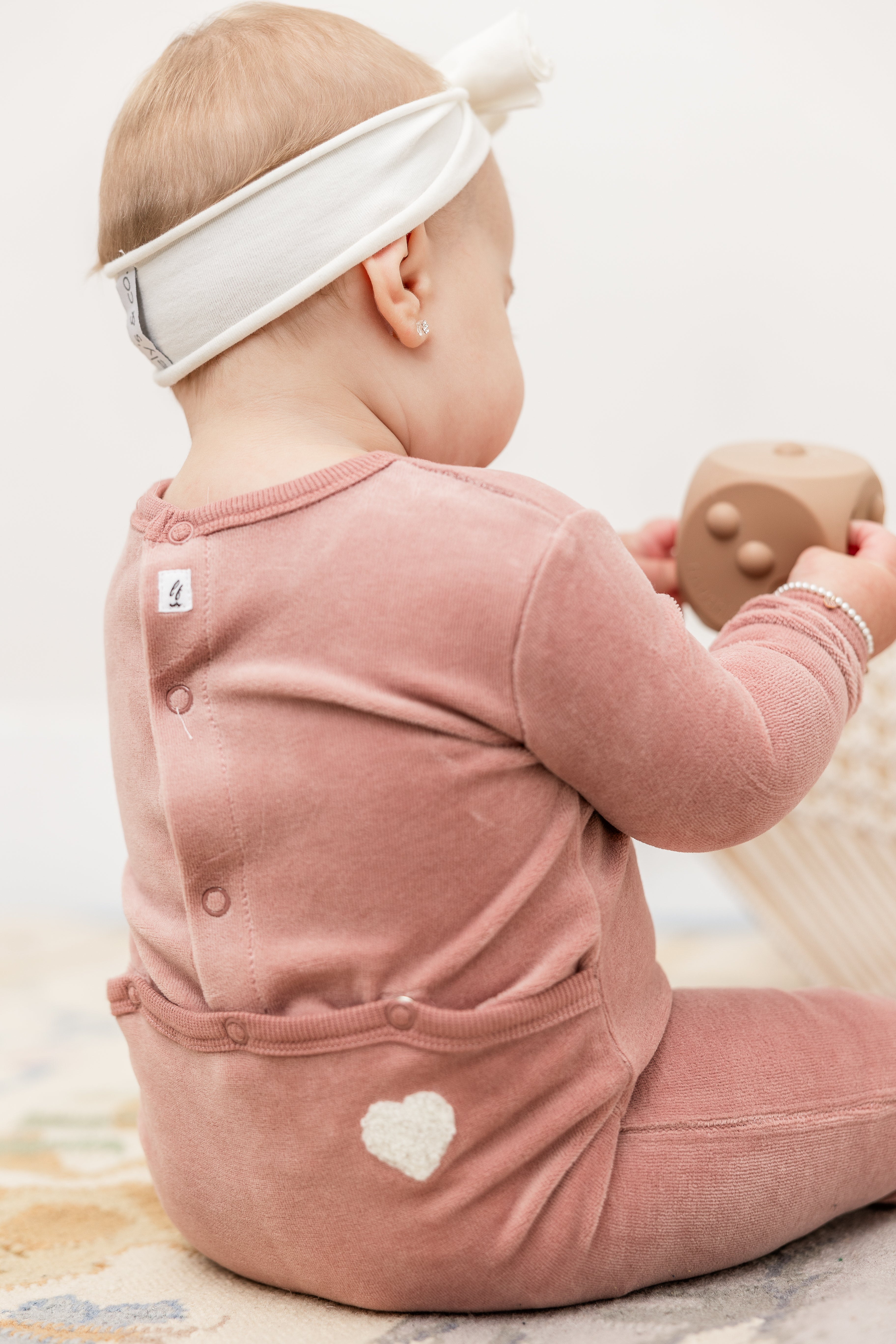 Baby boys and baby girls cotton velour 2 piece set. Long sleeve velour onesie with hook stitch star and heart at cent...