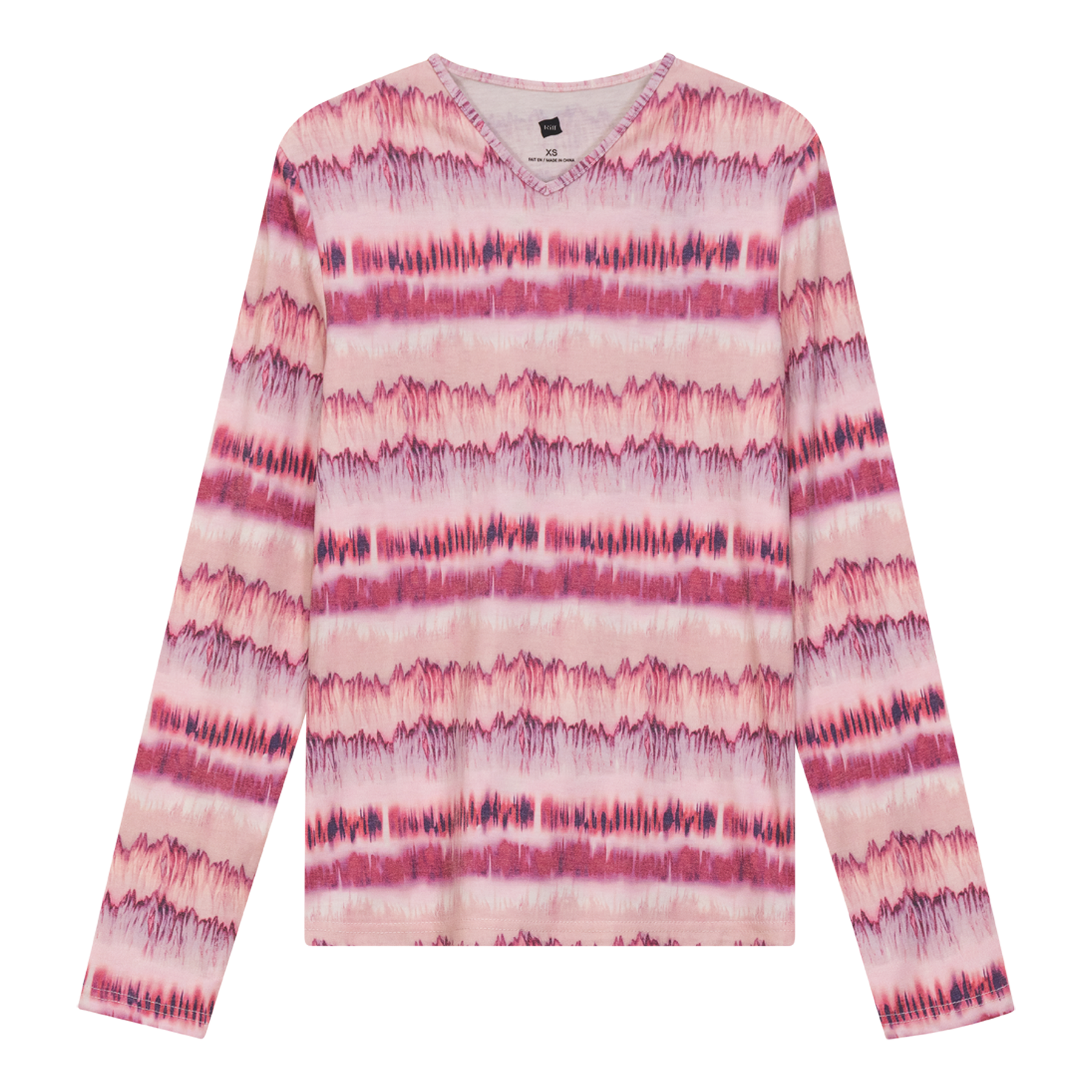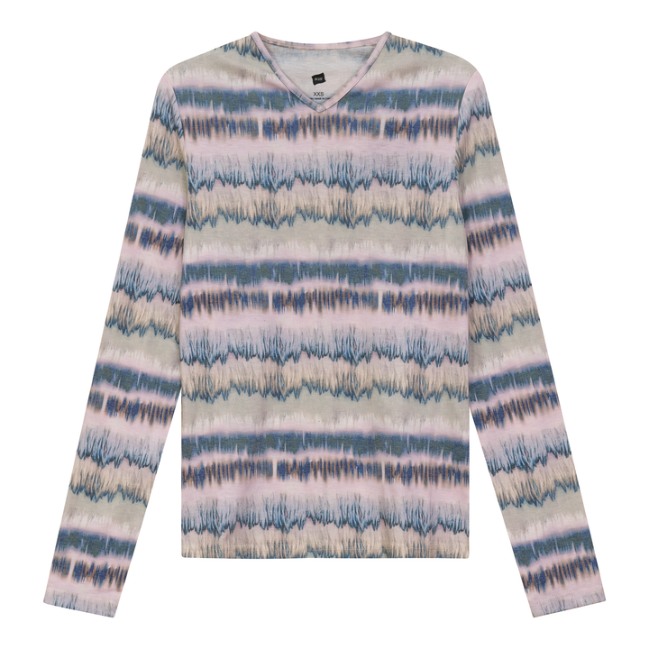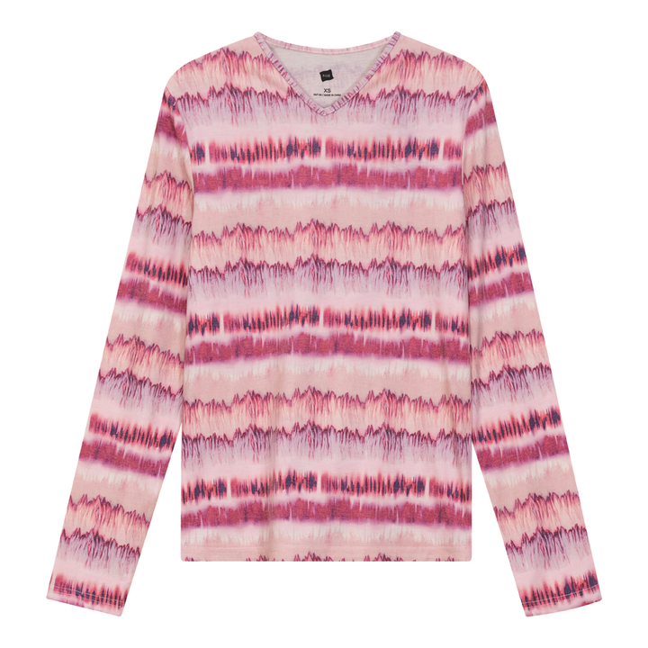 Ladies long sleeve wave printed v neck top. ֲ
