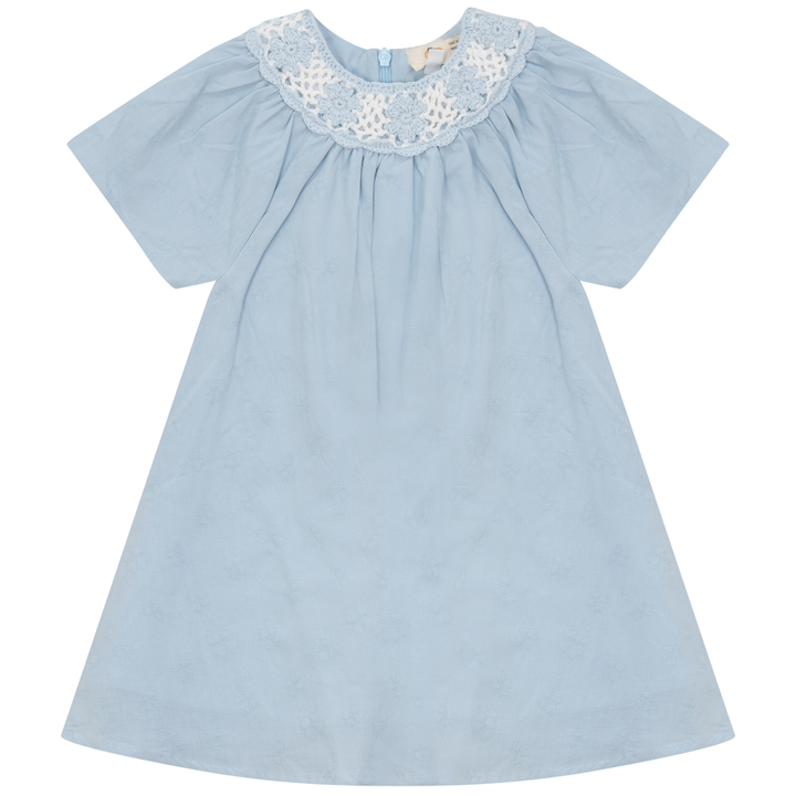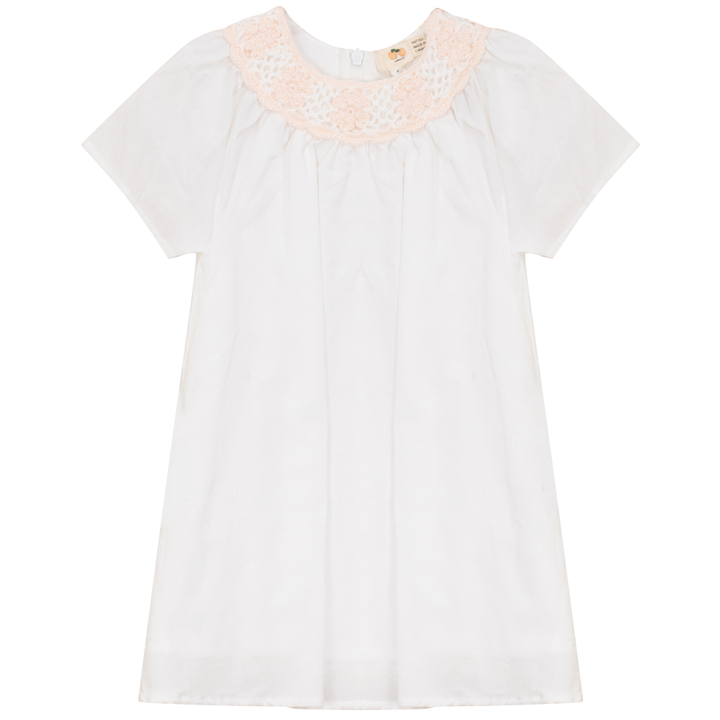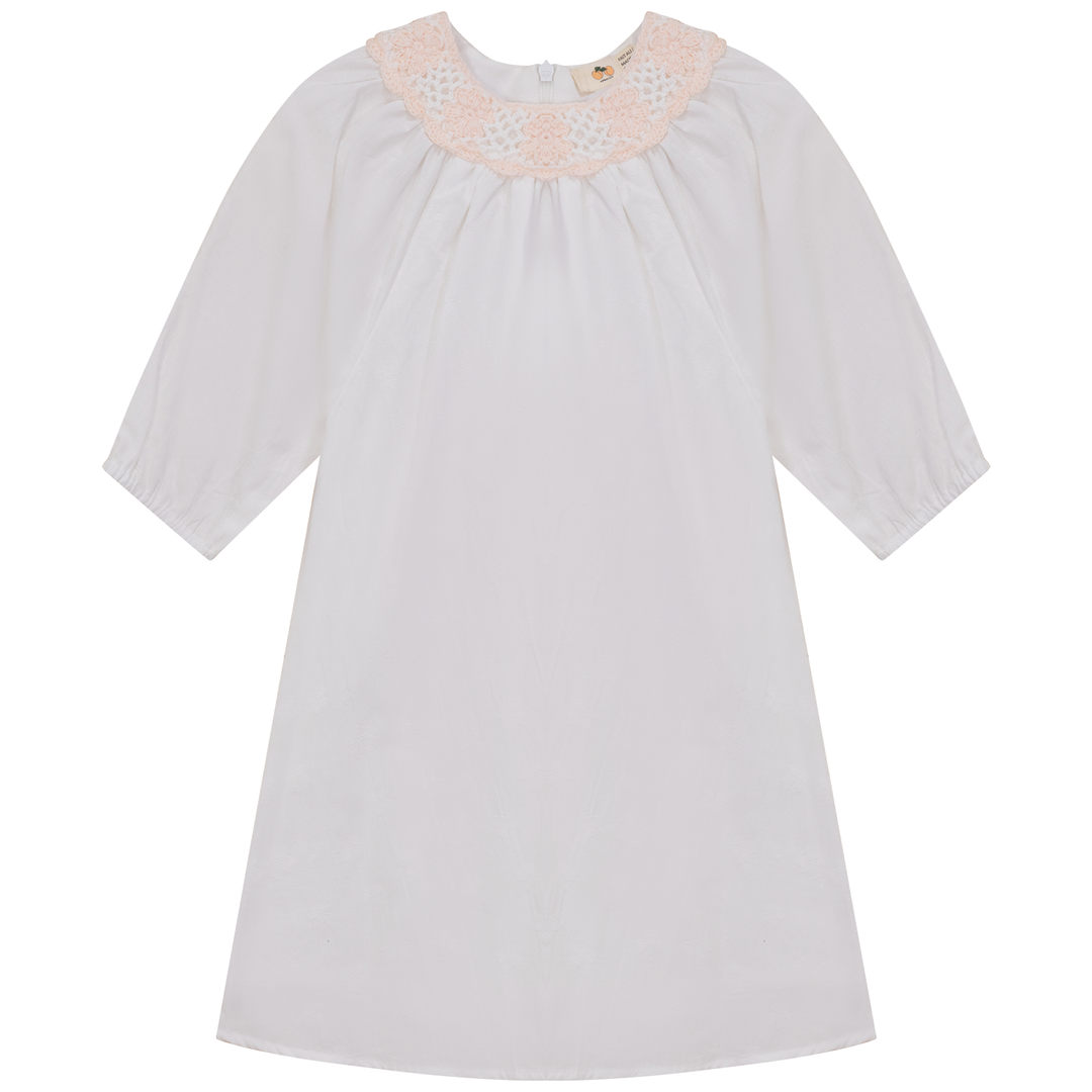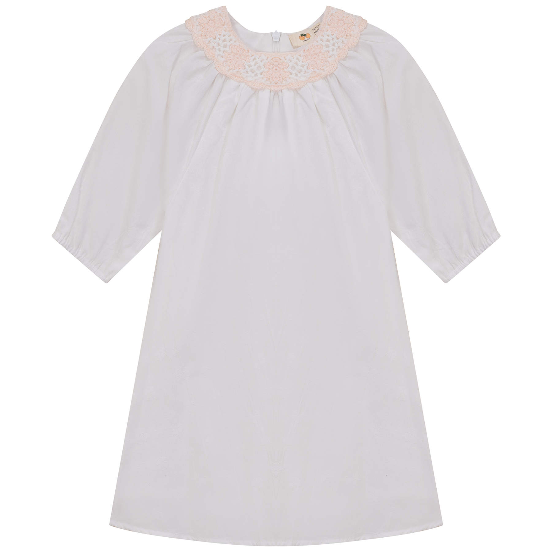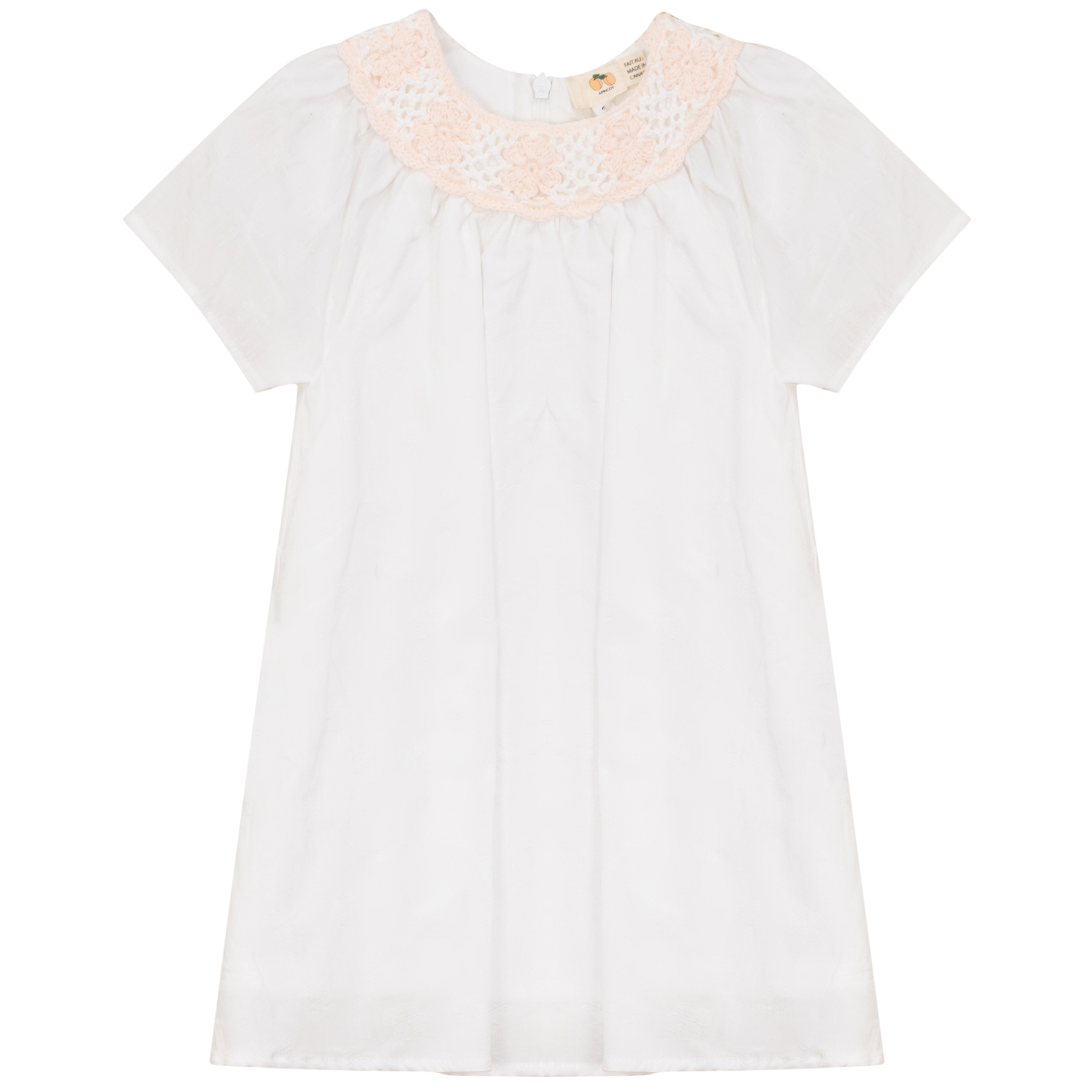 Girls woven cotton dress with crochet neckline and center back invisible zipper.3/4 sleeves size 4 and up.ֲAvailable ...