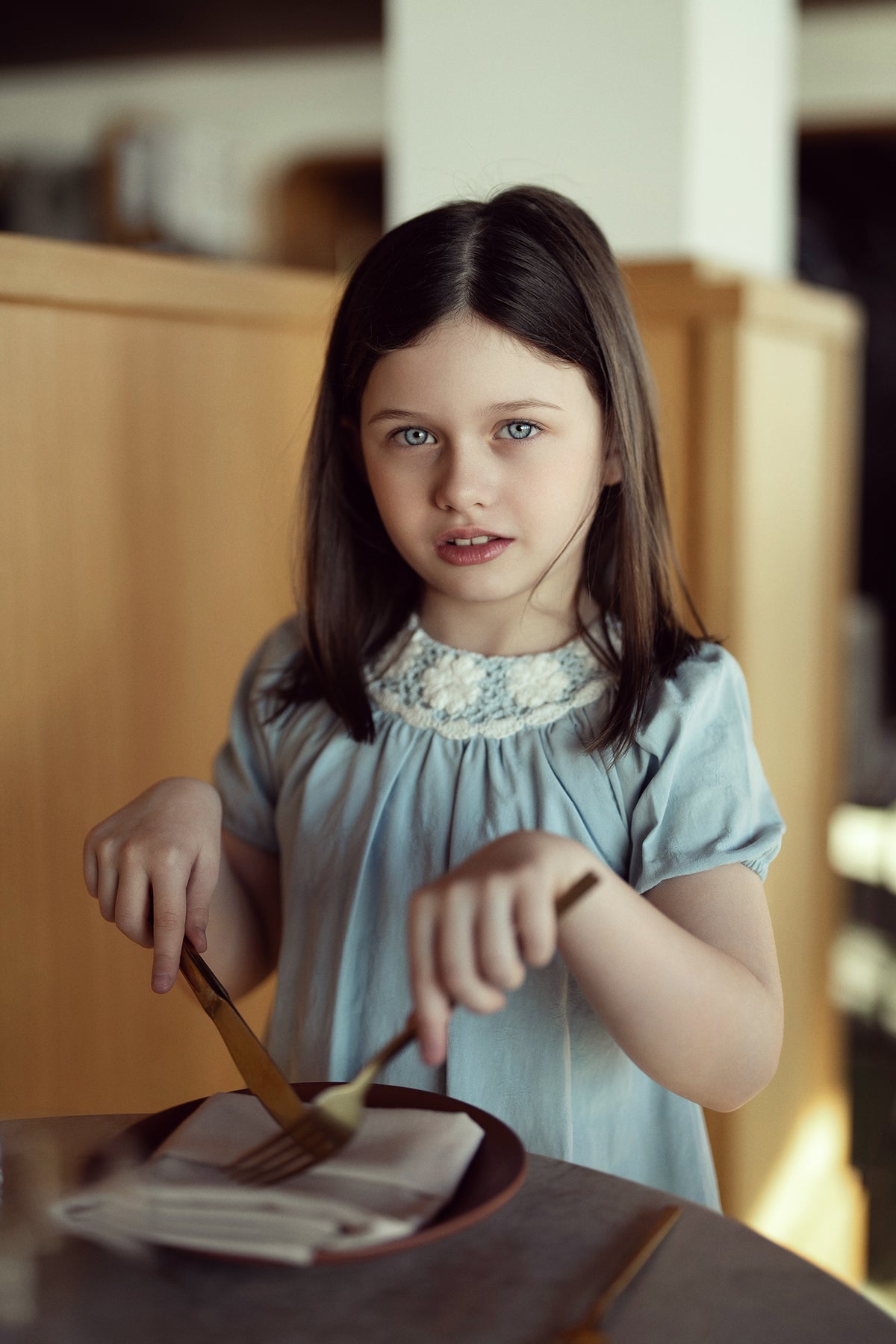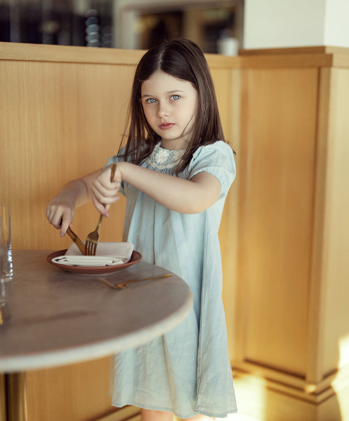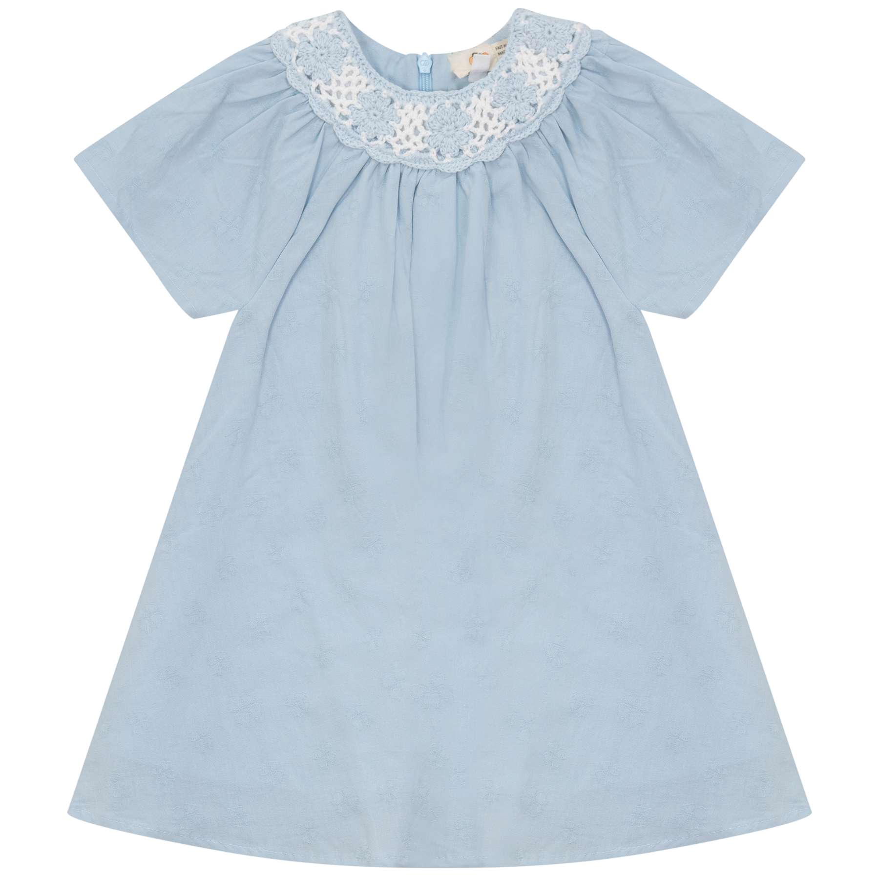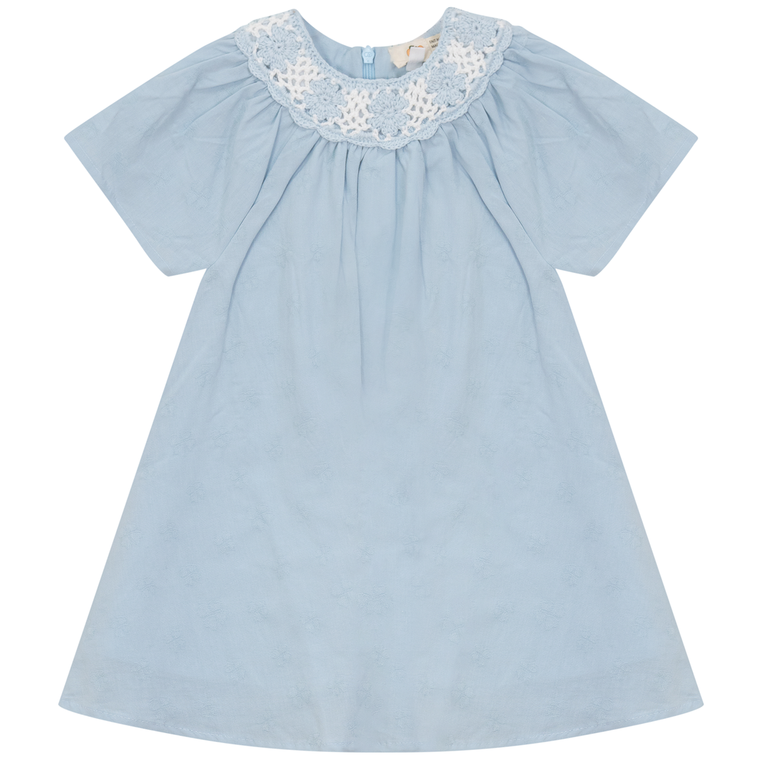 Girls woven cotton dress with crochet neckline and center back invisible zipper.3/4 sleeves size 4 and up.ֲAvailable ...