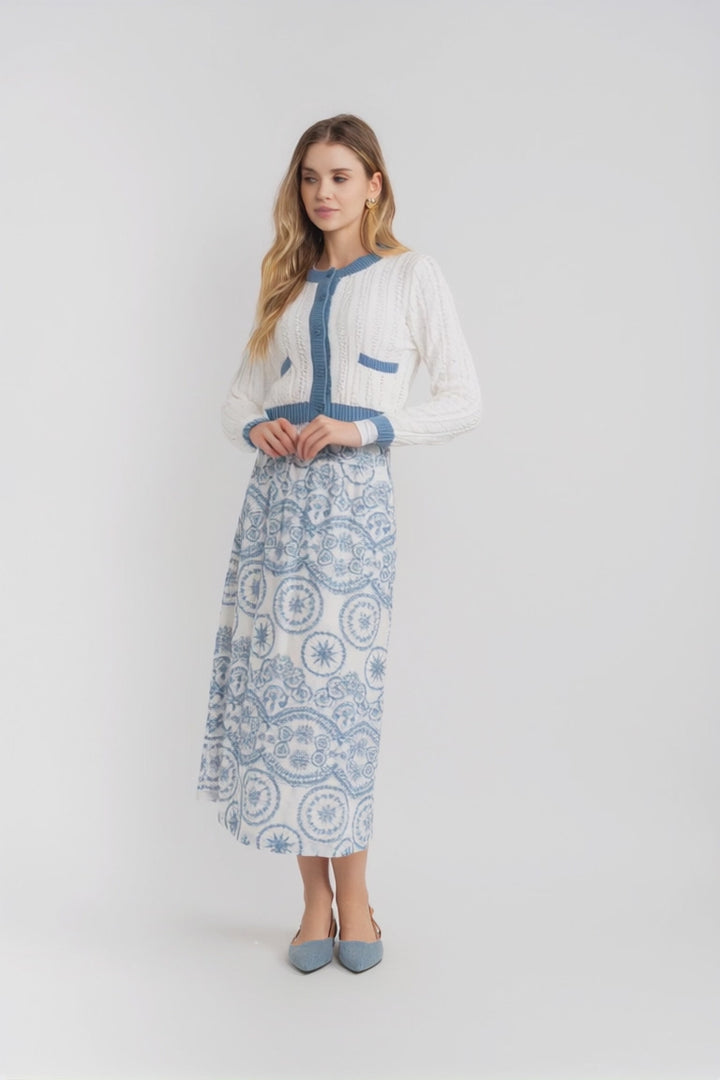 Teens midi woven printed skirt with left side zipper opening.ֲ