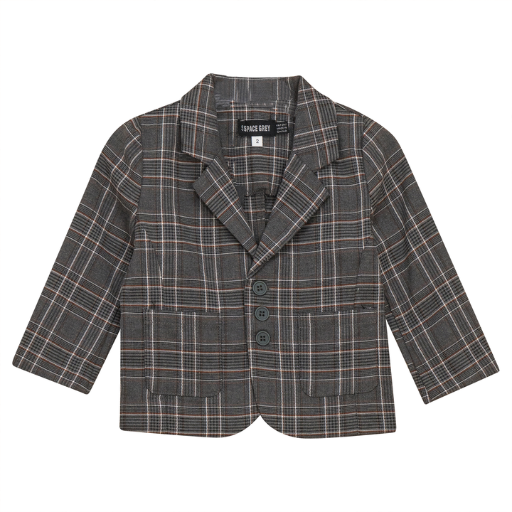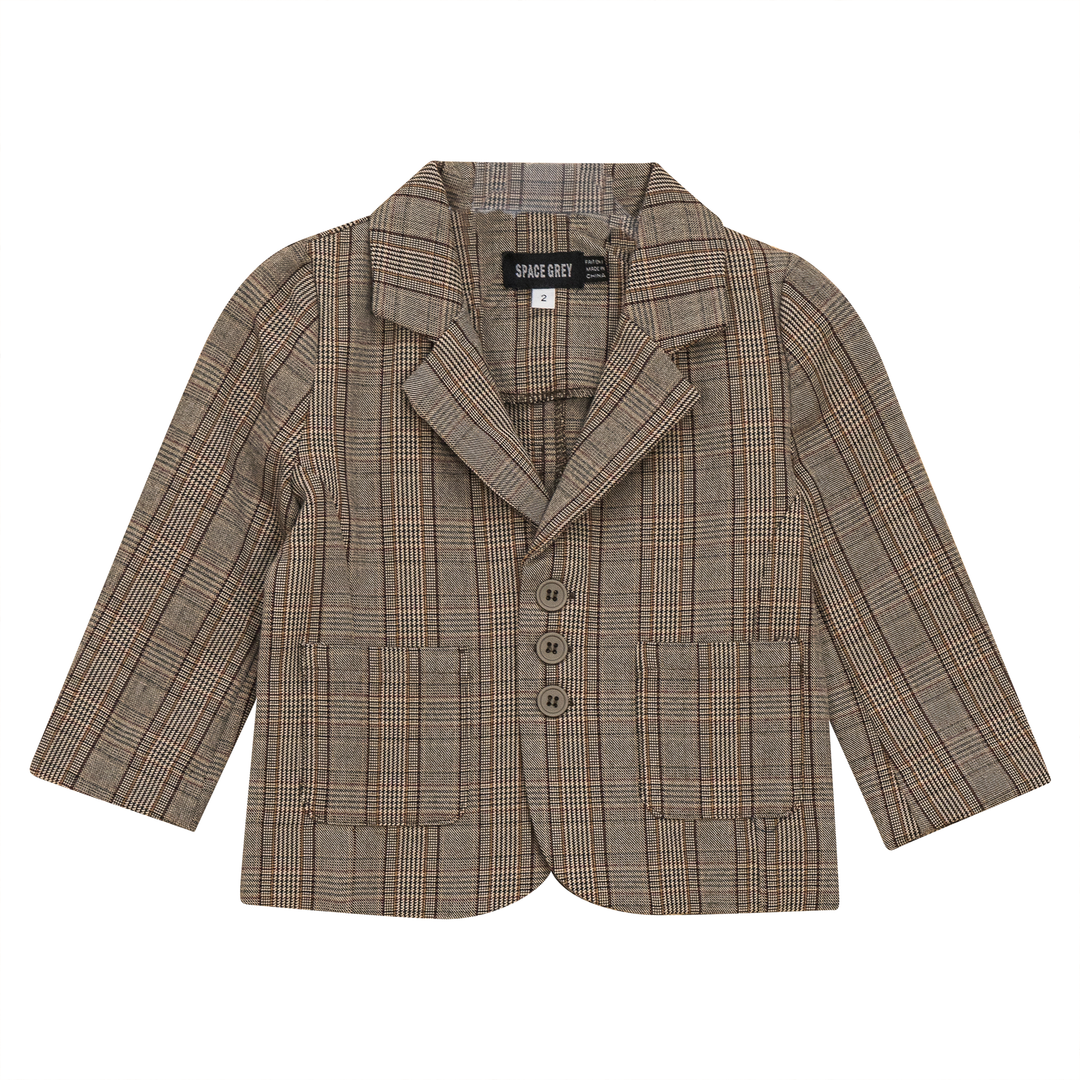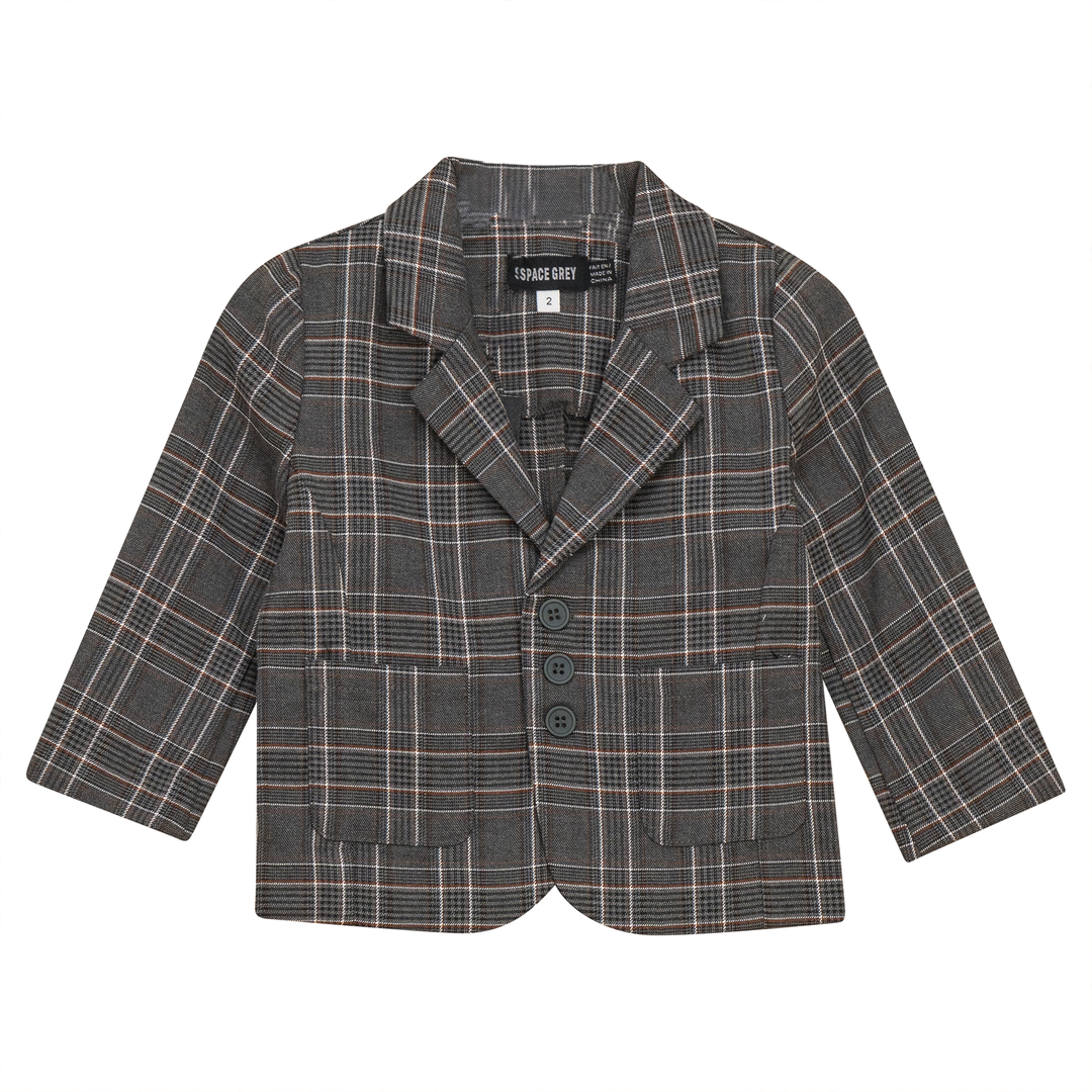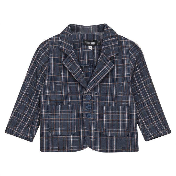 Boys woven plaid blazer with center front button closure and patch pockets. ֲAvailable in the following colors: