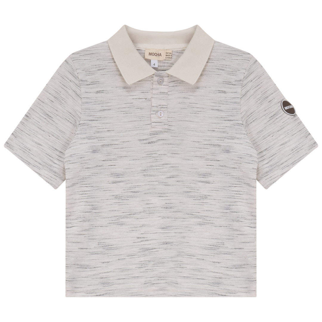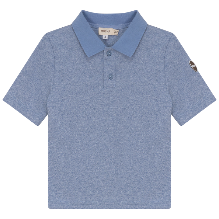 Boys short sleeve woven polo with center front button opening and collar.ֲ