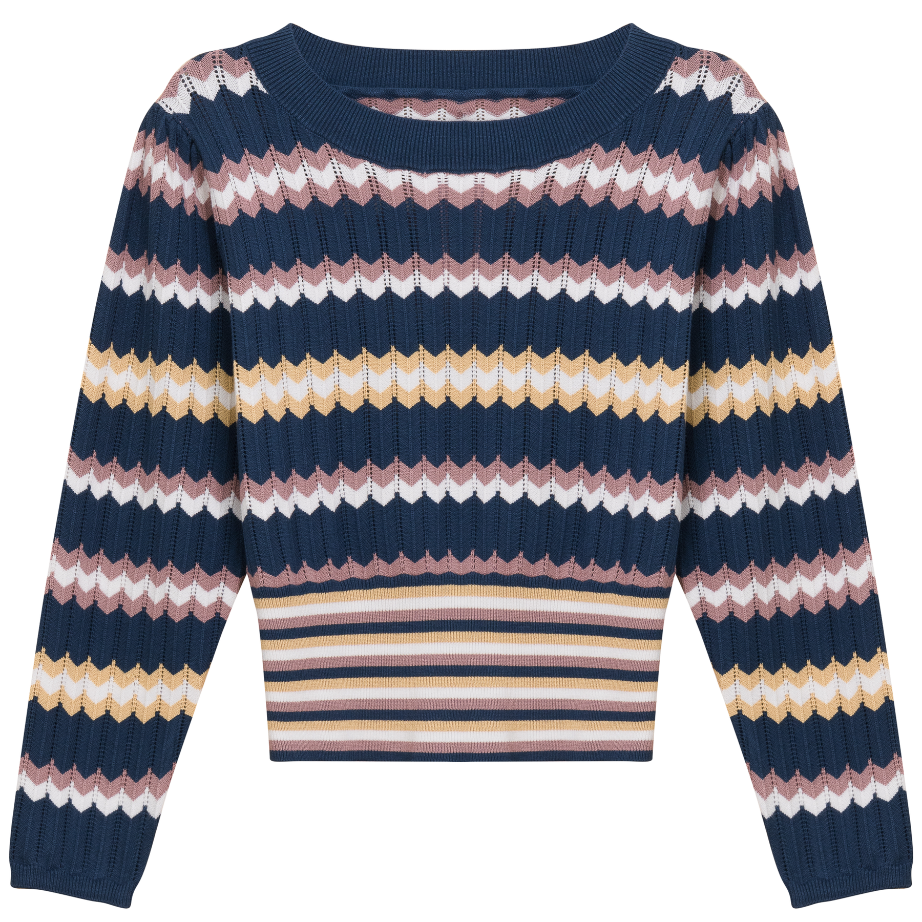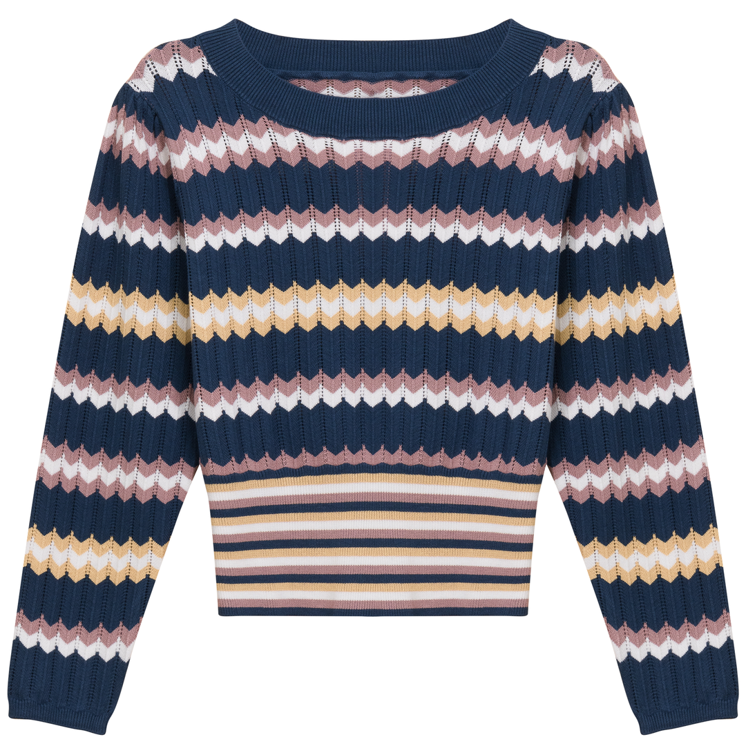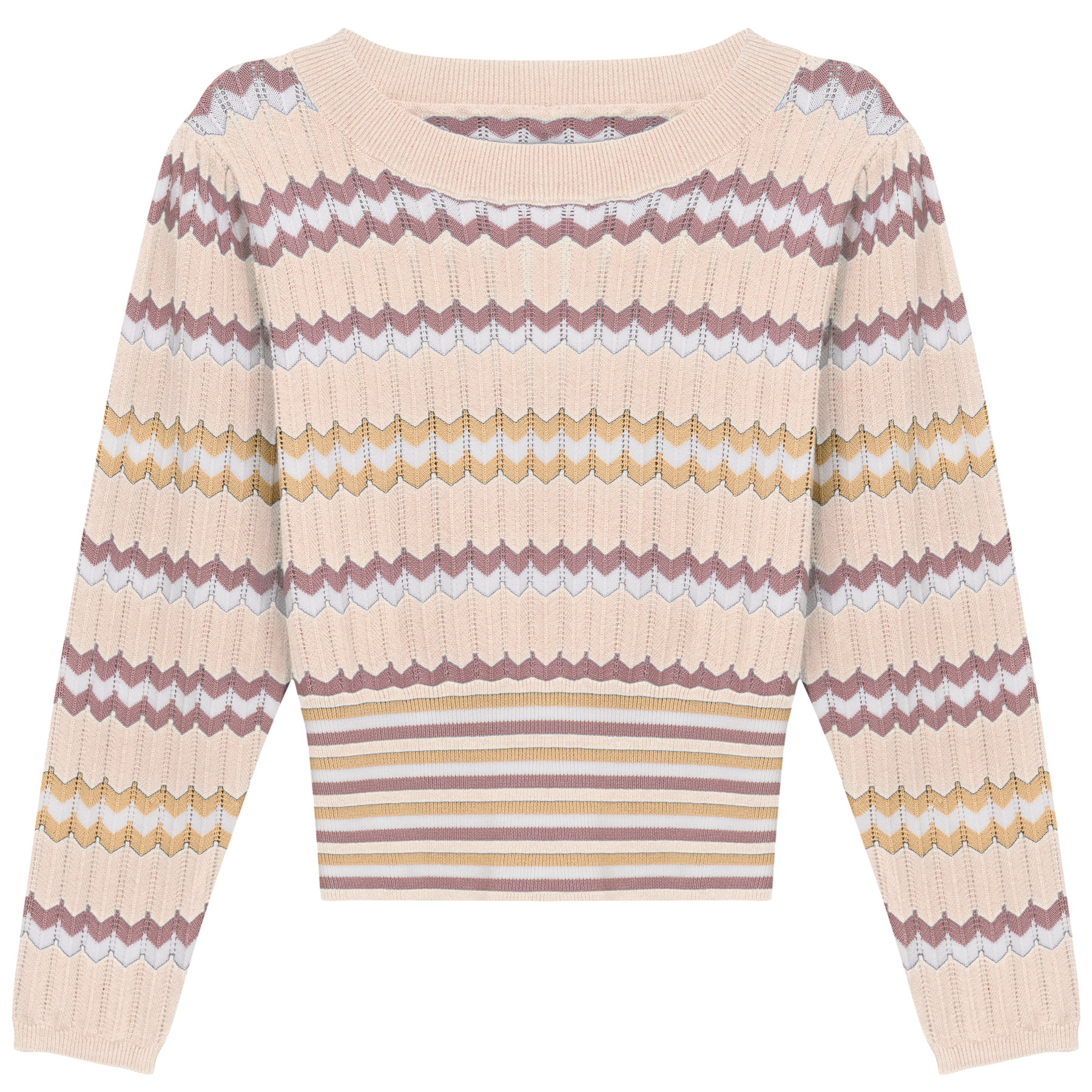 Teens 3/4 sleeved zig zag striped knit sweater with wide stripped hemband.ֲ